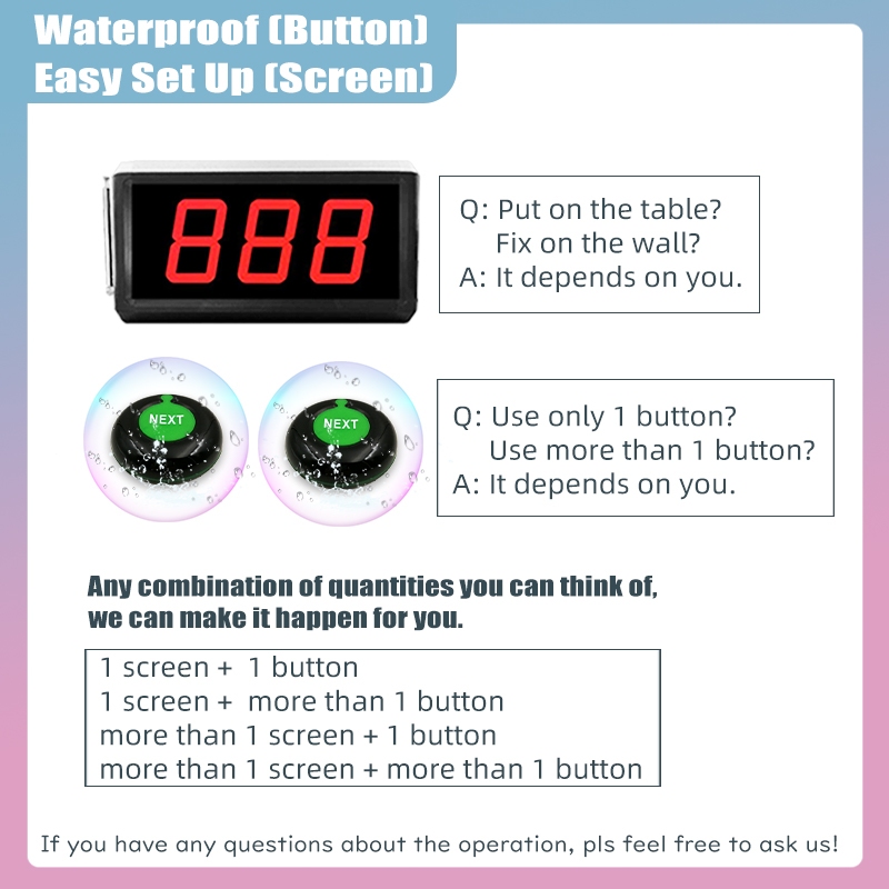 Wireless Queue Management Number Waiting Calling System Queueing system 3 digit NEXT counter call button