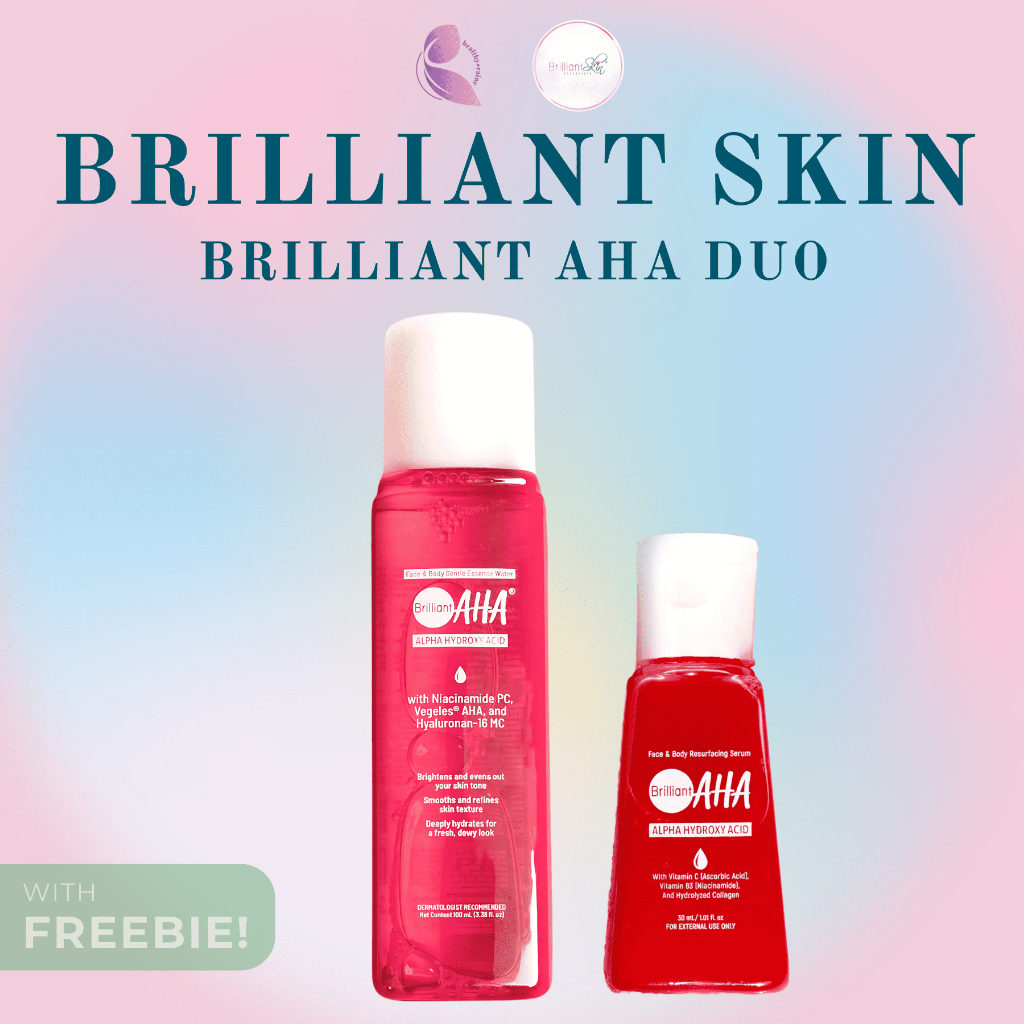 BRILLIANT SKIN AHA Duo (Serum & Essence Toner) Exfoliate & Brighten for a Radiant Glow | Gentle