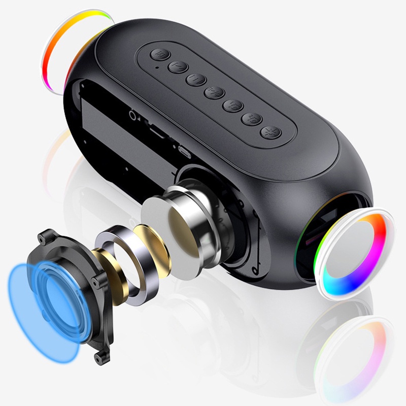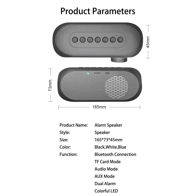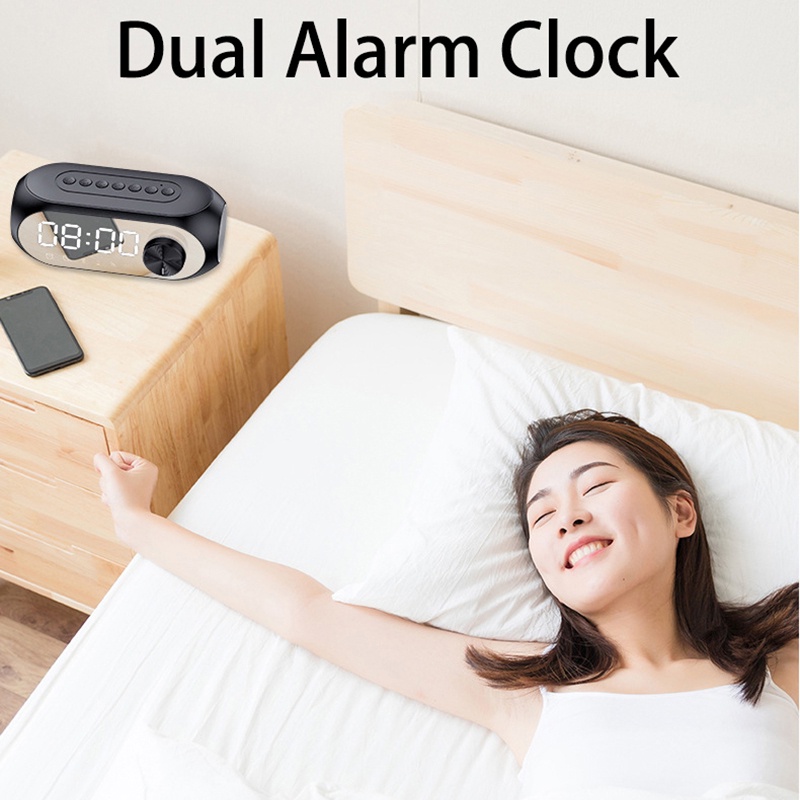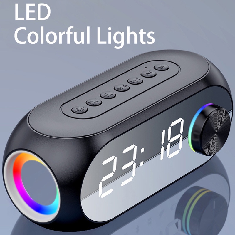 Wireless Speakers Desktop Soundbar Clock Dual Alarm LED Light HIFI Sound Box Support TF Card FM Radio AUX Mode