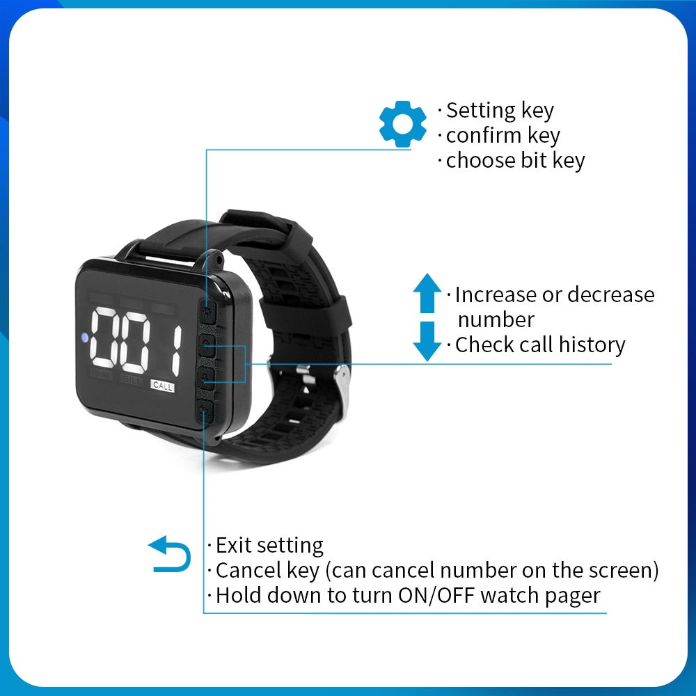 Wireless Table Service Bell Call System Machine Restaurant Pager Table Buzzer Service Display Watch Button