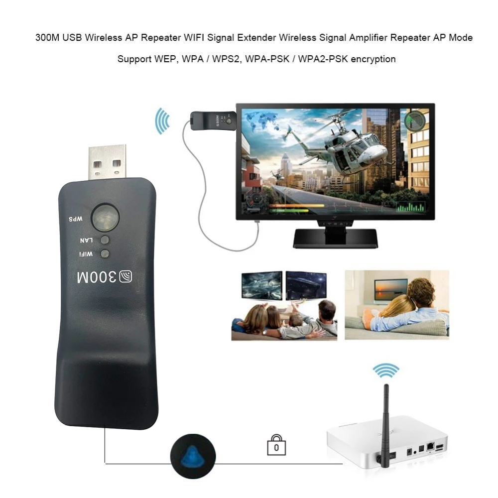 Wireless USB Universal 300Mbps Smart TV Wifi Repeater Adapter TV Sticks Ethernet Network Repeater for Samsung Sony LG TV