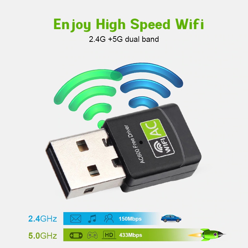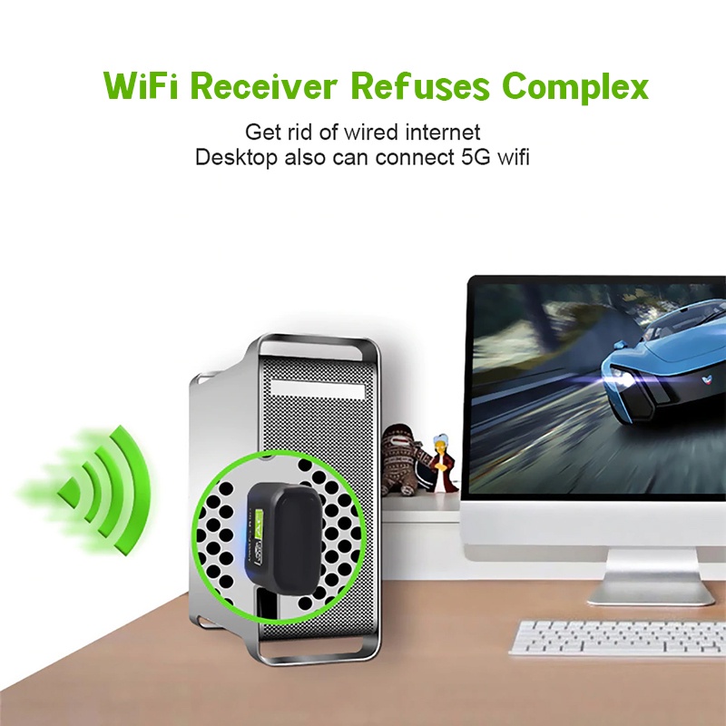 Wireless WiFi Adapter 2 in 1 2.4+5 G Wifi Dongle Receiver For Desktop Personal Computer PC Laptop