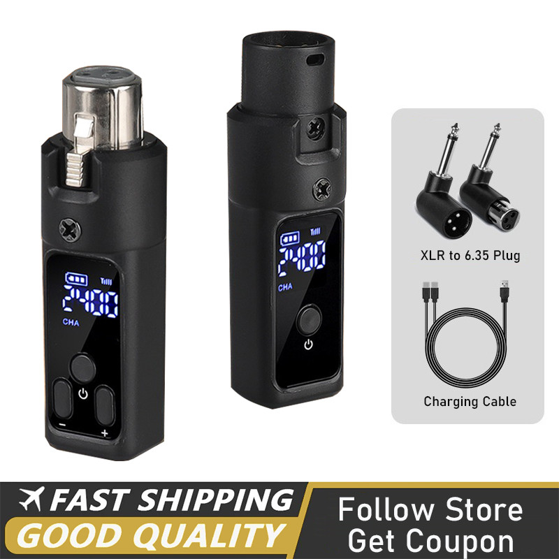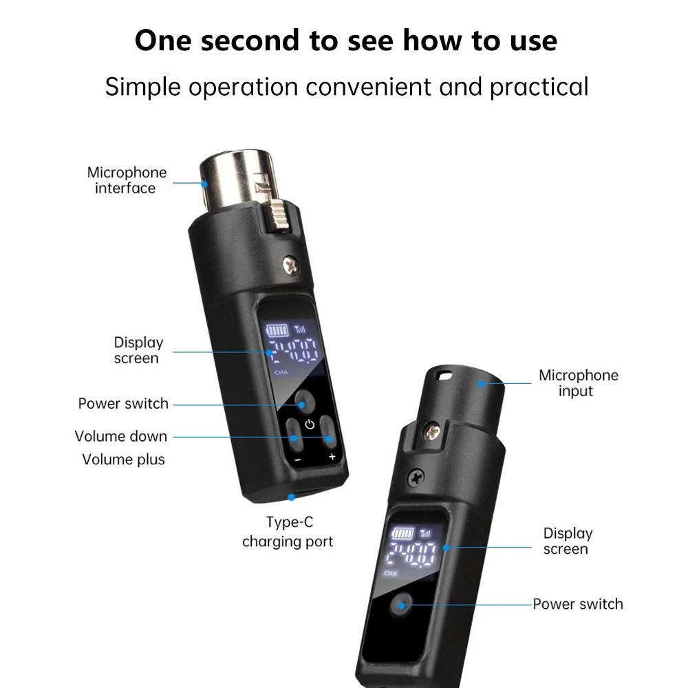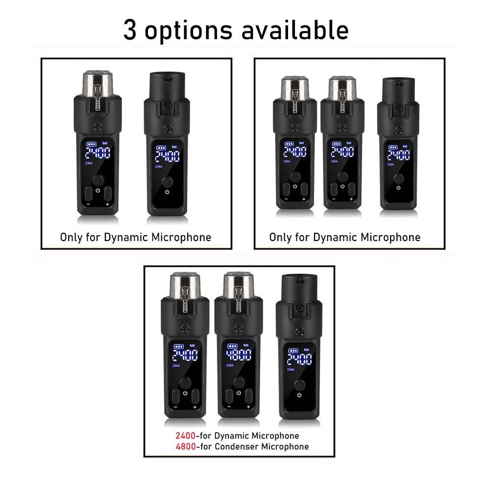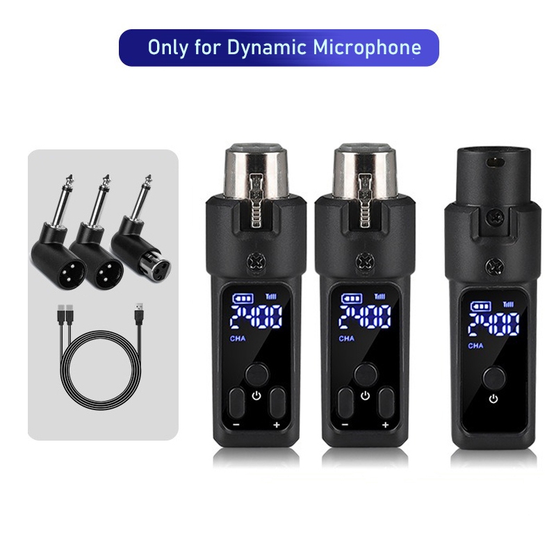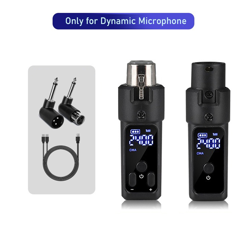 Wireless XLR Microphone Transmitter Receiver Rechargeable 2.4GHz Plug-on Wireless Microphone Adapter for Dynamic Microphone/Audio Mixer/Electric Guitar Bass