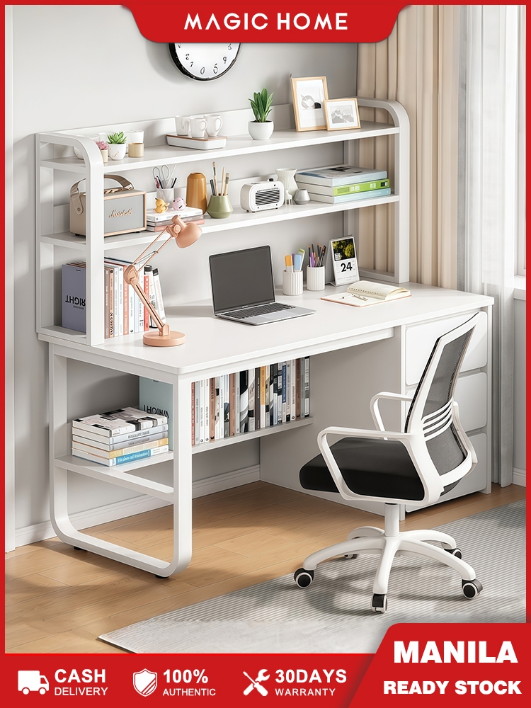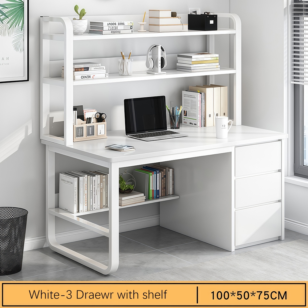 Wishroom Study Table White With Drawers Organizer Shelf Storage Bedroom Study Room Computer Desk