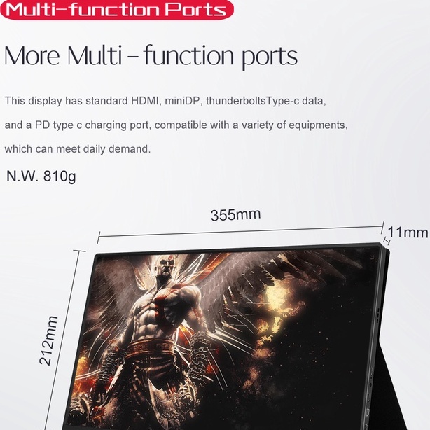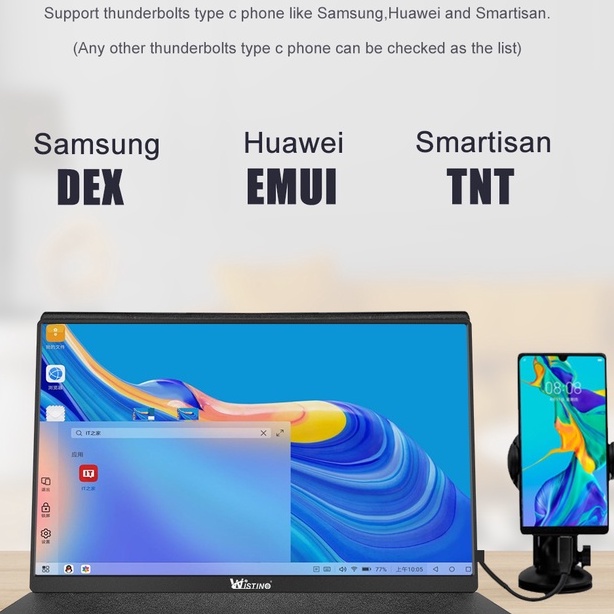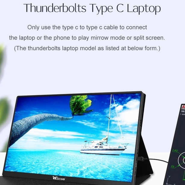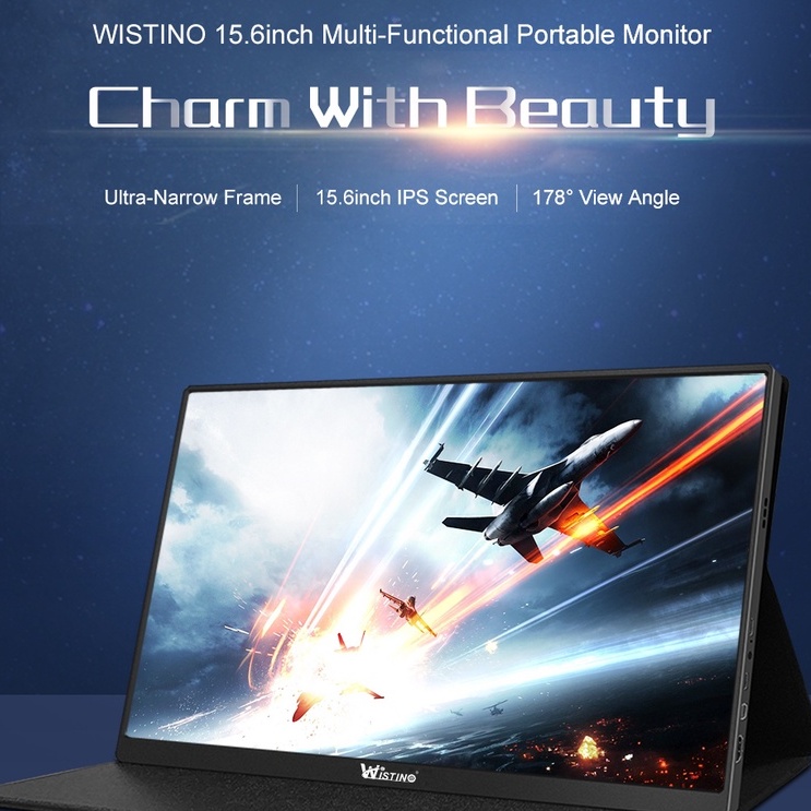 Wistino Thin Portable LCD HD Monitor 15.6 USB Type C HDMI for Laptop,Phone,Xbox Switch and Ps4 Portable LCD 1080P Monitor