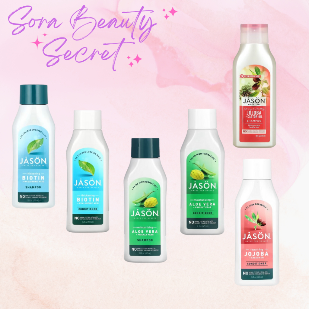 SoraBeauty | Jason Natural, Jojoba+Castor Oil, AloeVera+Pear, Hyaluronic Acid Shampoo & Conditioner