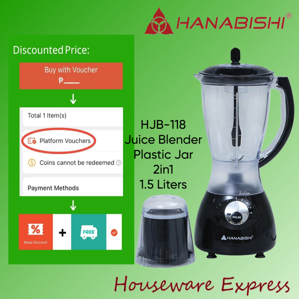 Hanabishi HJB118 Juice Blender 1.5 liters HJB-118 (Houseware Express)
