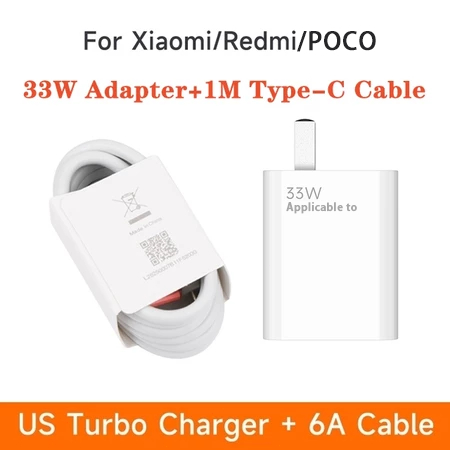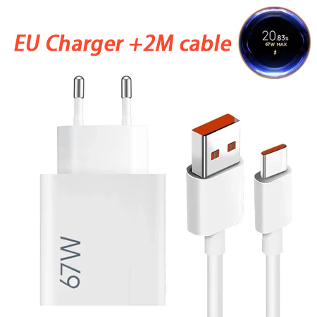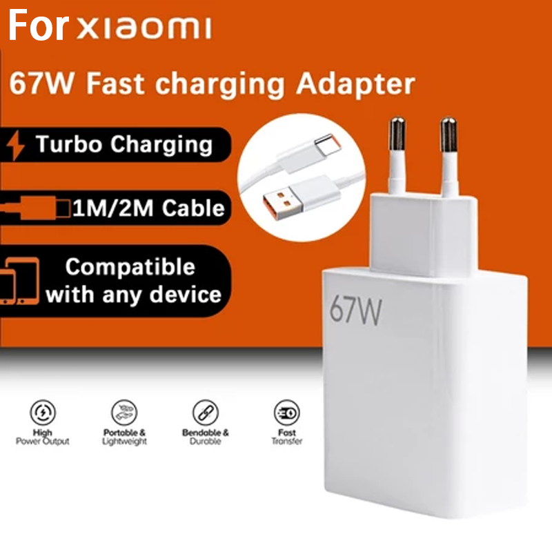 For Xiaomi 67Watts EU/US Turbo Charged Fast Charge Adapter&6A USB-Type-C Cable For Xiaomi Redmi POCO