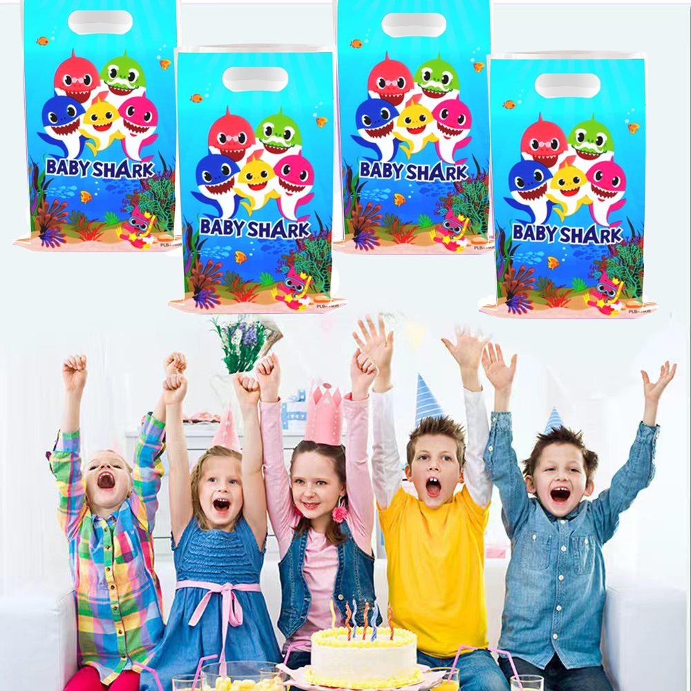 50pcs Sharks Theme Birthday Party Gift Bag Candy Bag Kid Birthday Party Decoration Baby Shower Goody Biscuit Bag