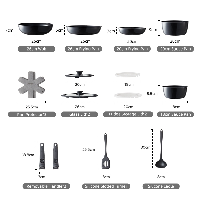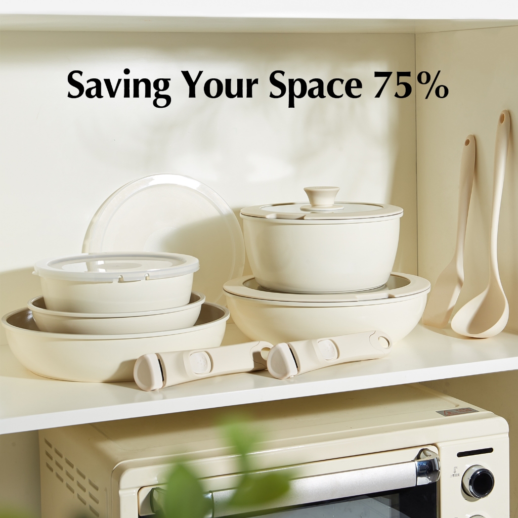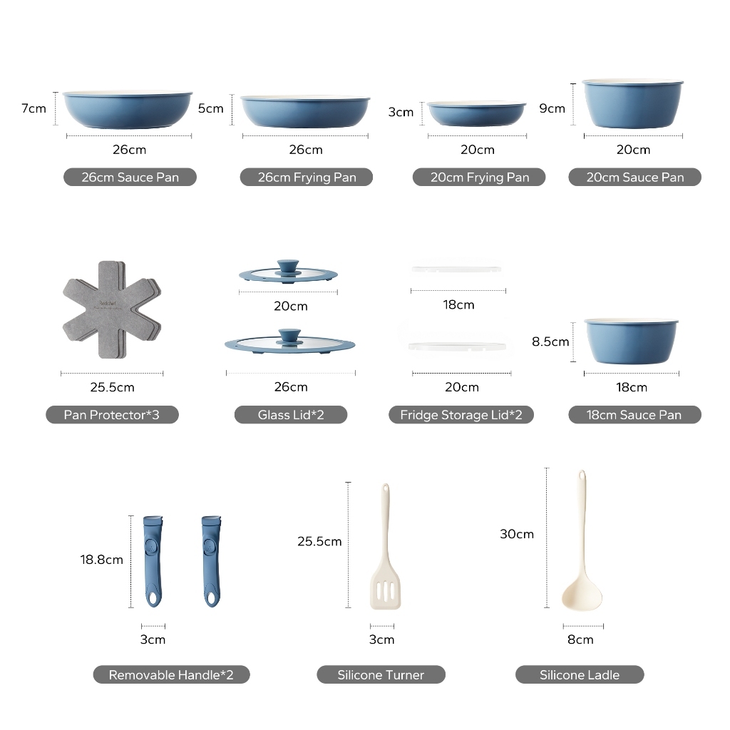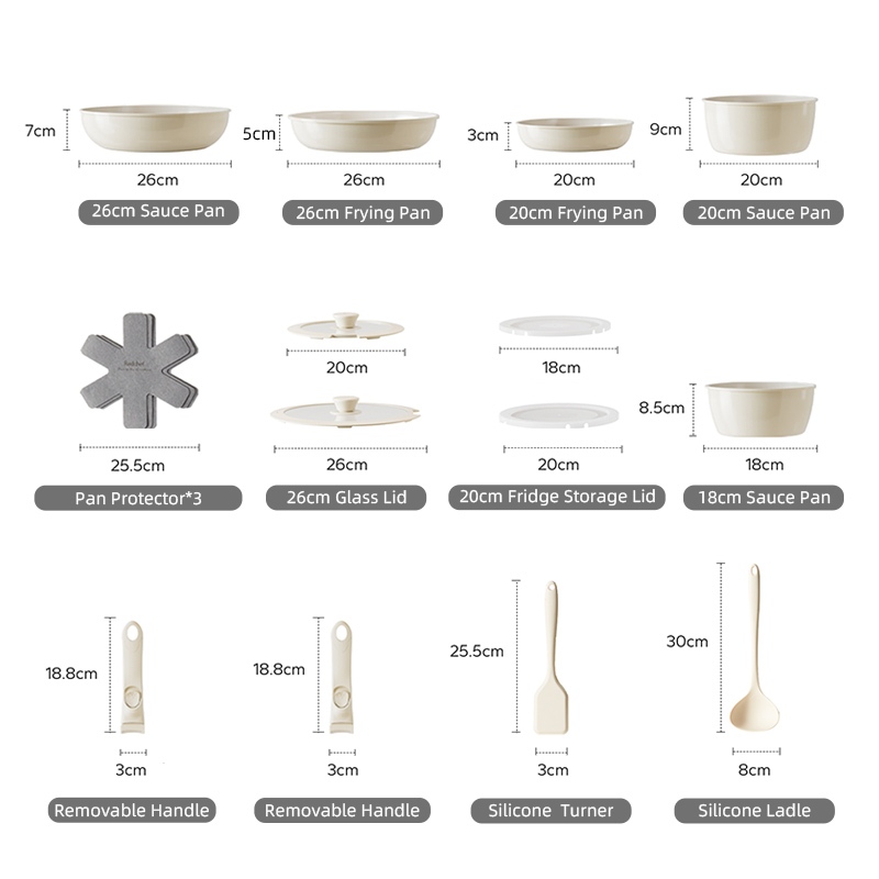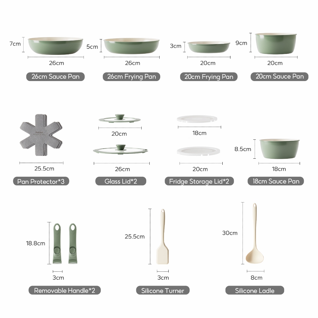 Redchef Removable Handle Series Nonstick Ceramic Rock Cookware Set 16Pcs No PFAS& PTFE&PFOA Suitable for All Stoves