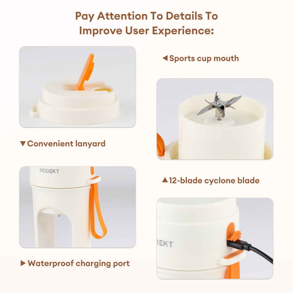 HODEKT Portable Juicer Blender Rechargeable 400ml 12 Blades Cordless Fruit Juice Cup Food processor