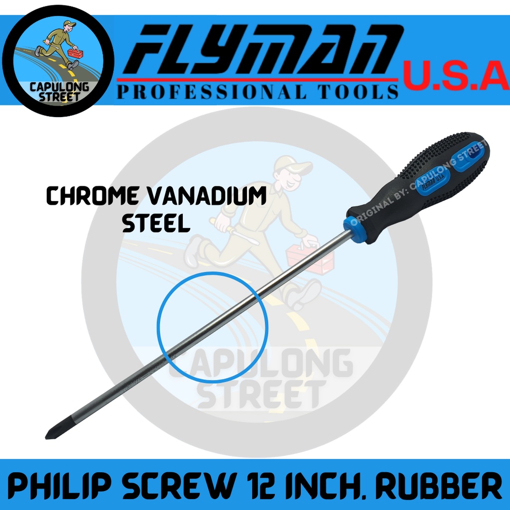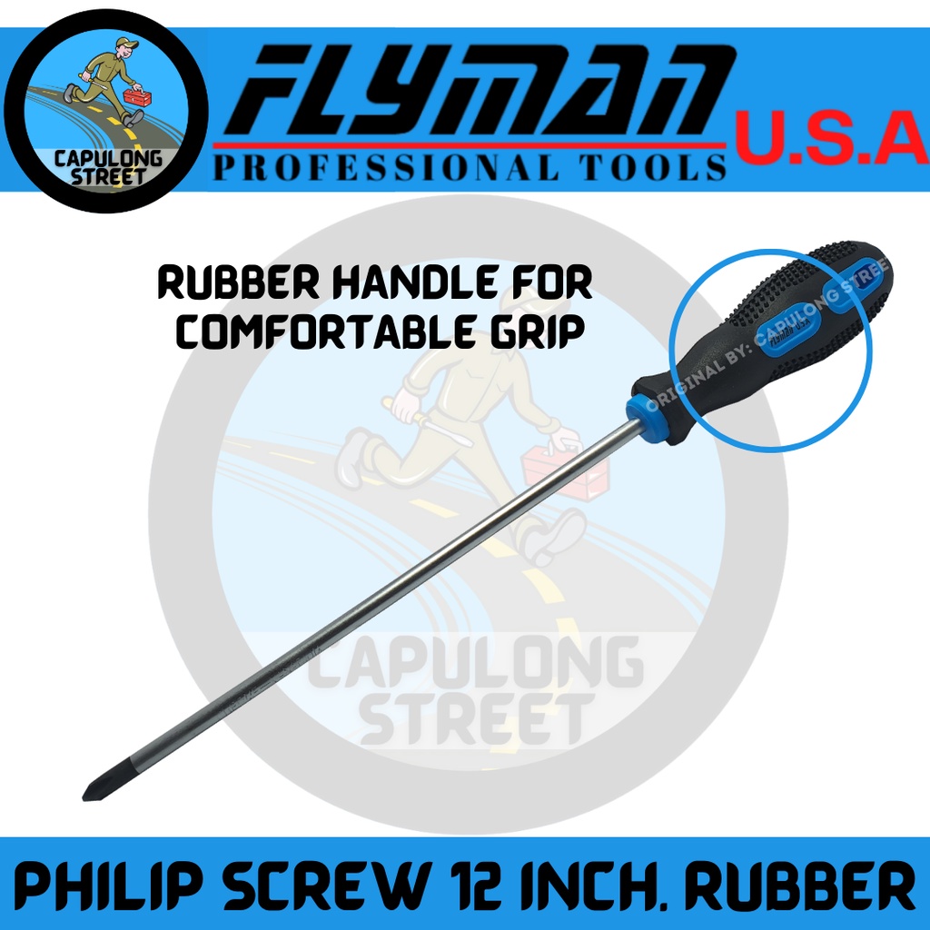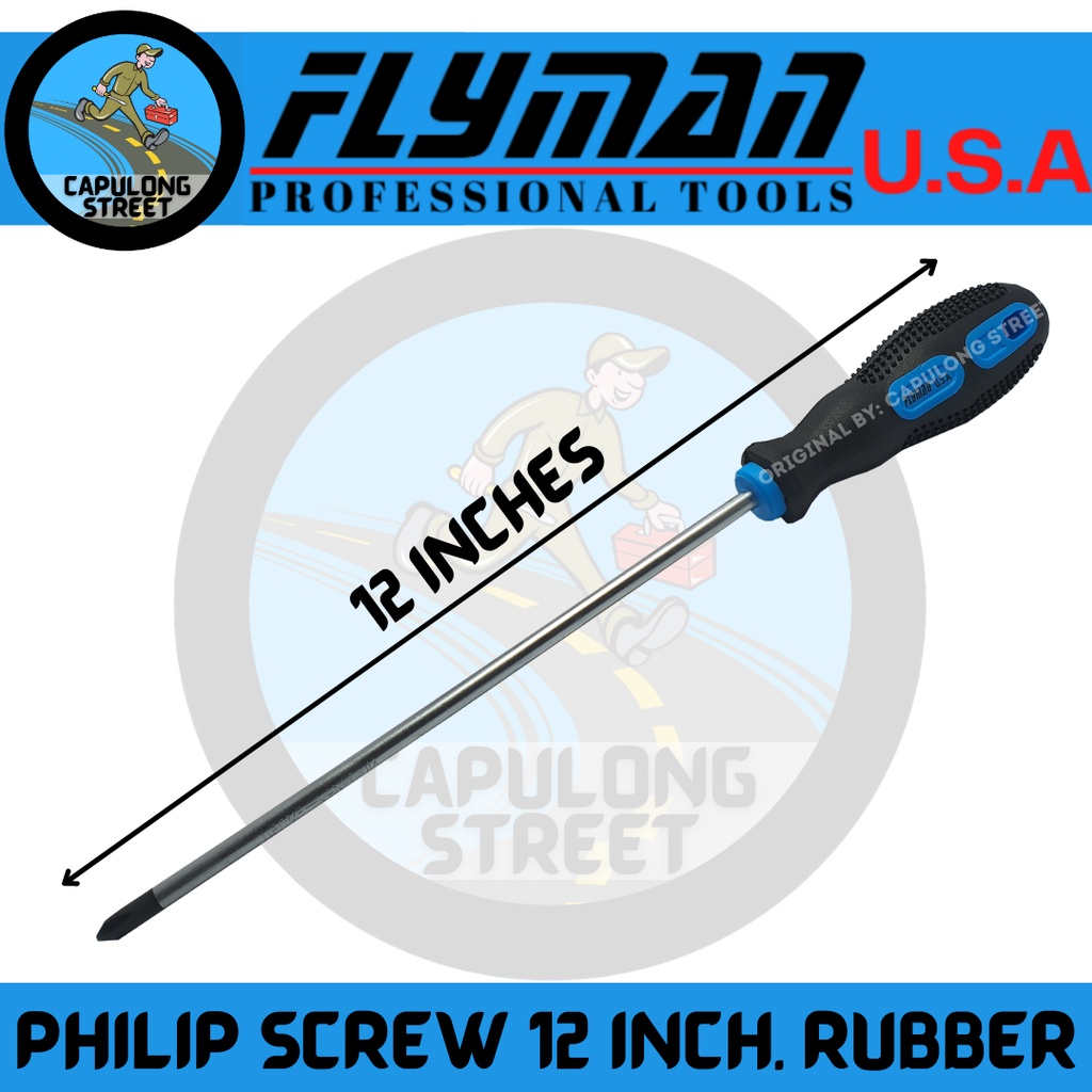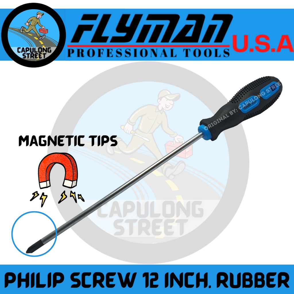 Flyman Philip Screwdriver 12 Inches Rubber Handle Magnetic Tips Electrician Tools
