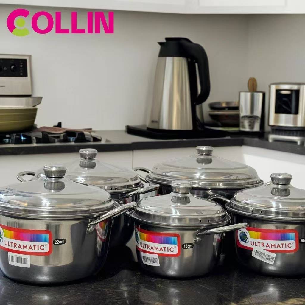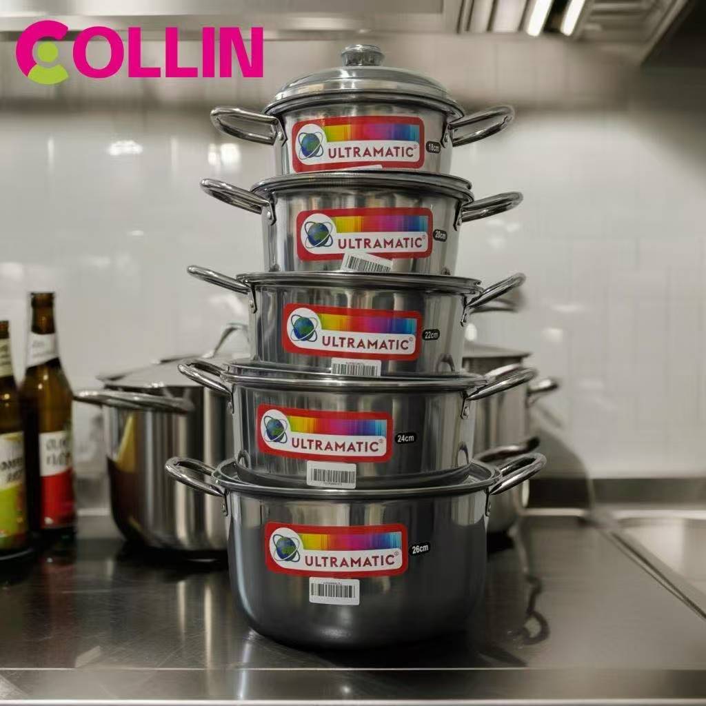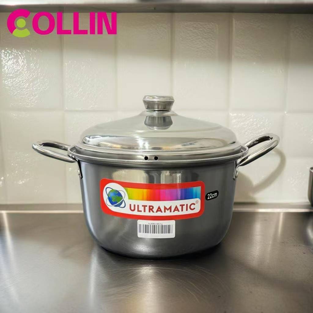 STAINLESS STEEL DOUBLE HANDLE POT SOUP POT CASSEROLE CAMPING PICNIC POT 18CM 20CM 22CM 24CM 26CM