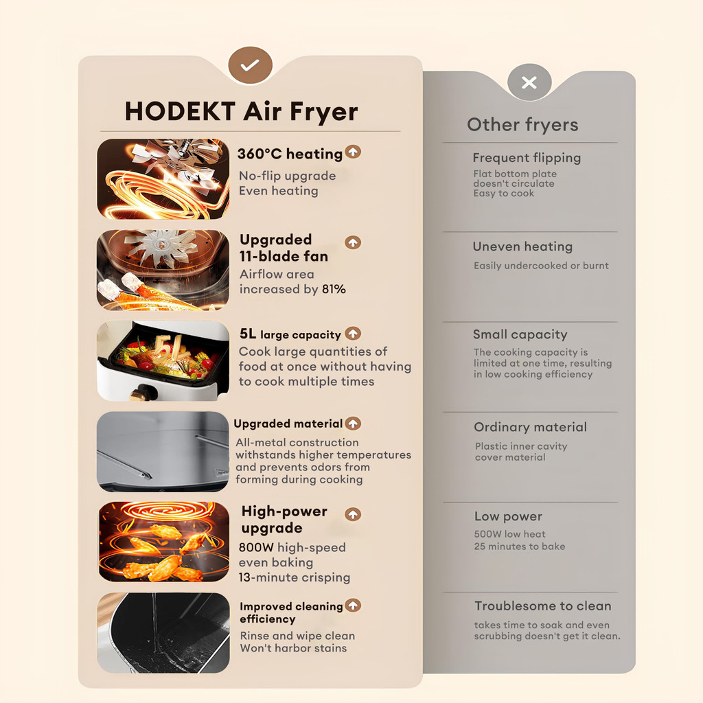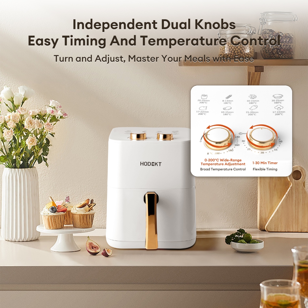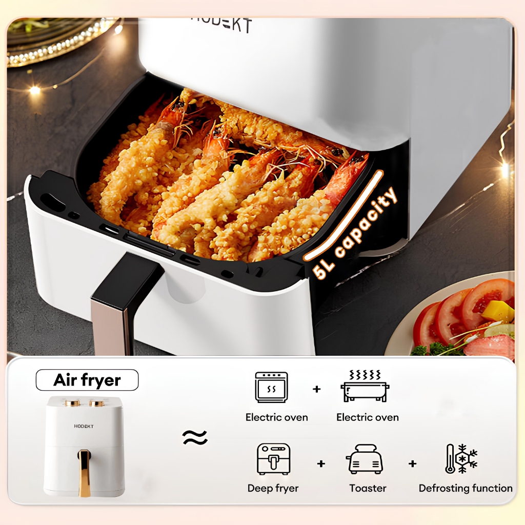 HODEKT Air Fryer 5L/12L Dual Knob 360° Stereo Heating Non Stick Multi-functional Air Fryer