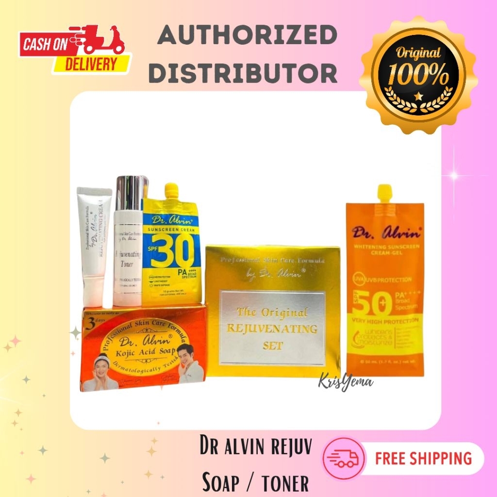 Dr Alvin Original Gold Rejuvenating Set / Kojic Soap / Toner / Sunblock