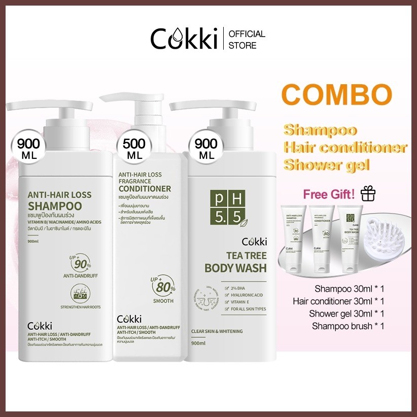 ☃ ◕ Cokki Korea 900ml Anti-Hair Loss and dandruff Shampoo + Keratin Conditioner Hair treatment for