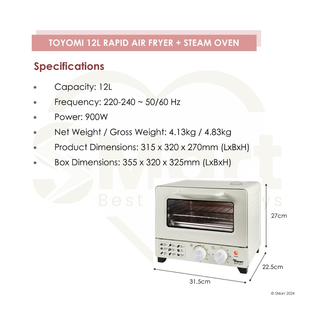 Toyomi 12L Air Fryer & Steam Oven AFO 1266ST AFO 1277ST
