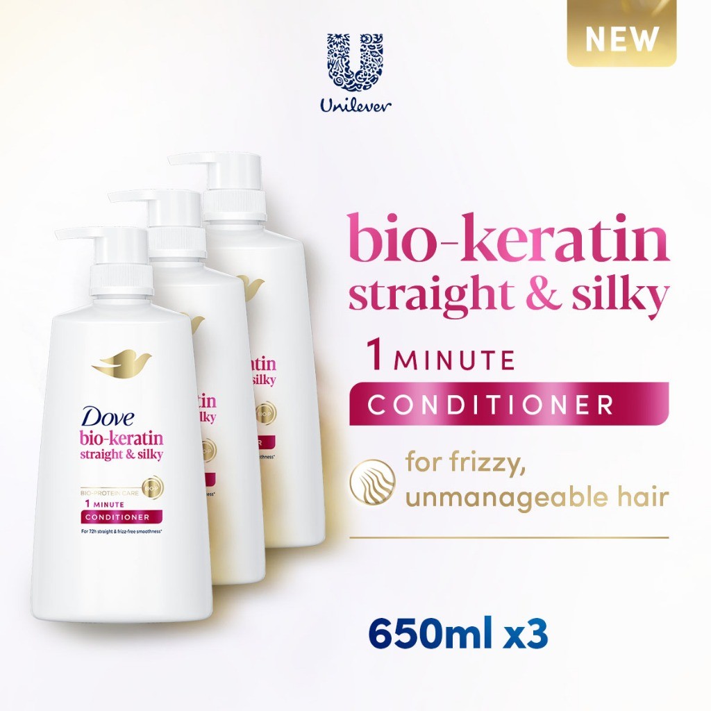 [BUNDLE OF 3] Dove Bio-Keratin Straight & Silky 1 Minute Conditioner 650ml