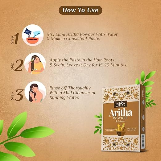 Elina Aritha Powder - Reetha - Dried Indian Soap Nuts-Herbal Shampoo - 100g - Made in India