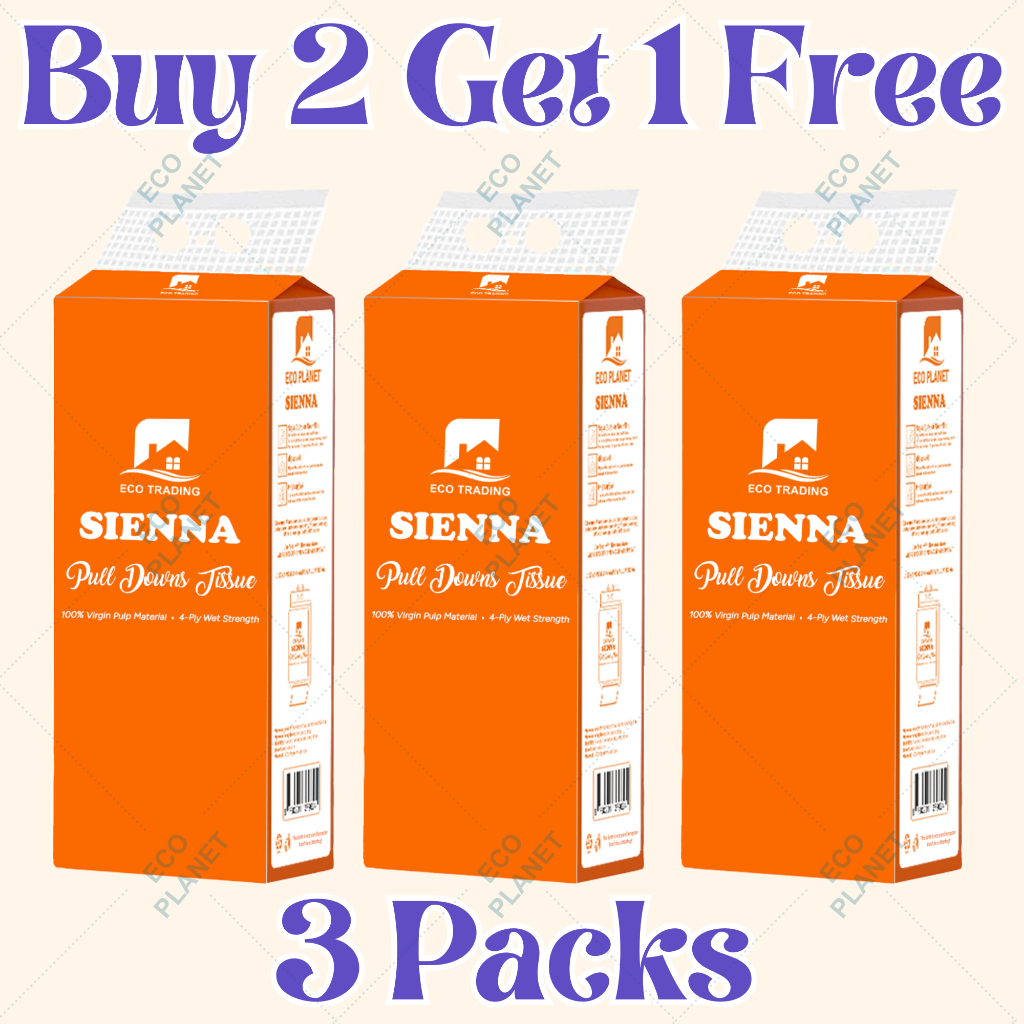 (BUY 2GET 1 FREE) 3 PACKS SIENNA Tissue 1500 Sheet 4-Ply Wall Hang Pull Downs Tissue for Face