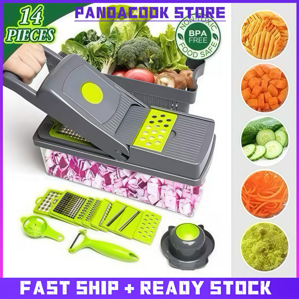 Pandacook 14in1 Multifunction Vegetable Dicer Grater Cutter with Drain Basket Fruit Slicer Chopper