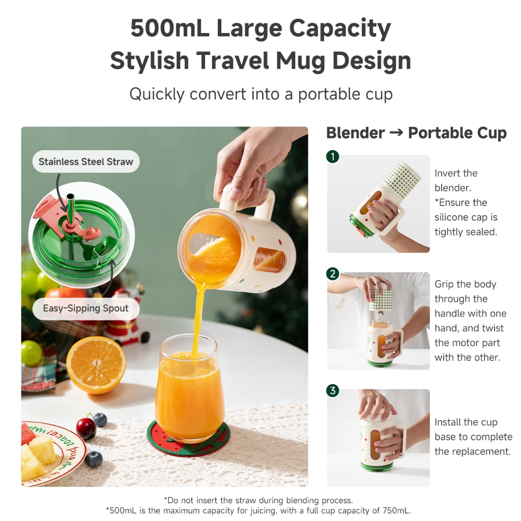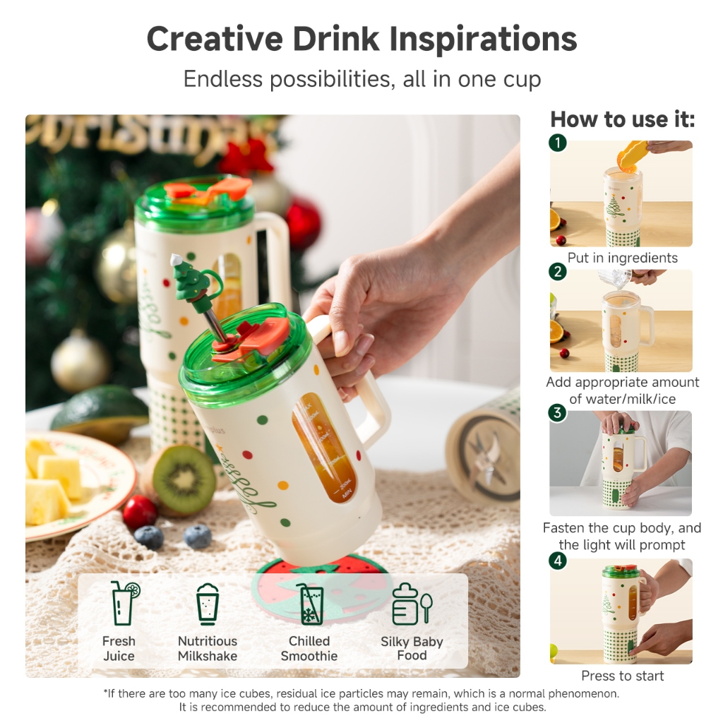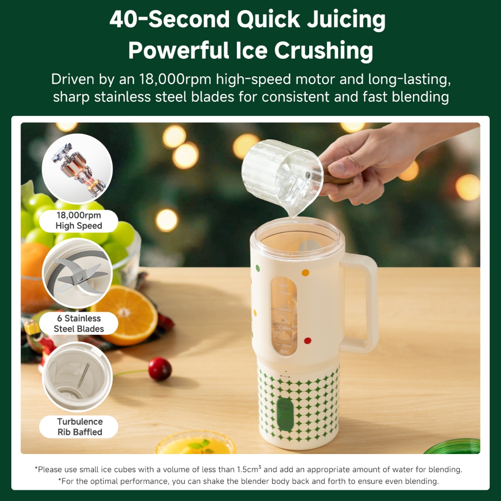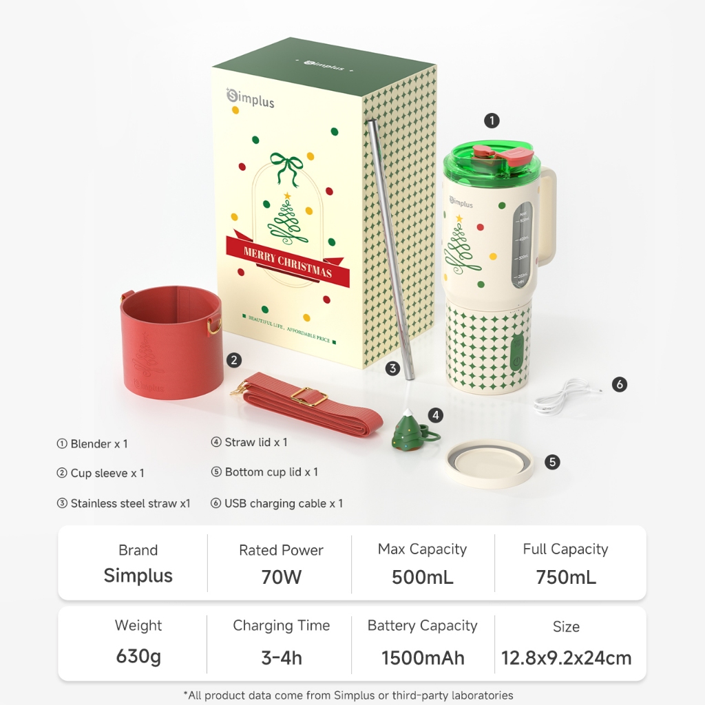 Simplus Christmas Portable Blender-Wireless Juicer 500mL IPX6 Stainless Steel Blades