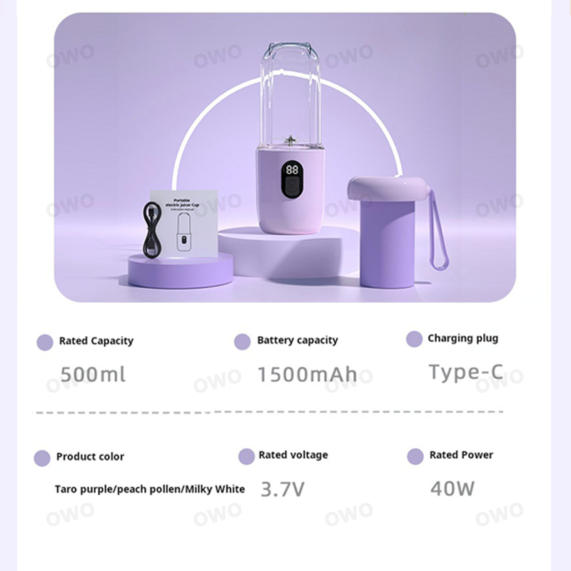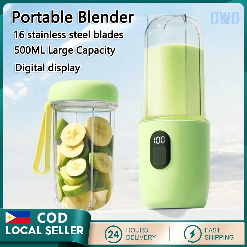 Portable Juicer Blender Tumbler Heavy Duty Digital Electric Juicer Smoothie Blender 16 Blades 500ML