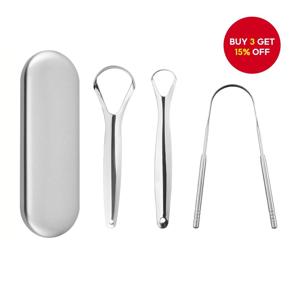 Stainless Steel Tongue Scraper Set with Storage Box, Portable Oral Care Tools for Fresh Breath