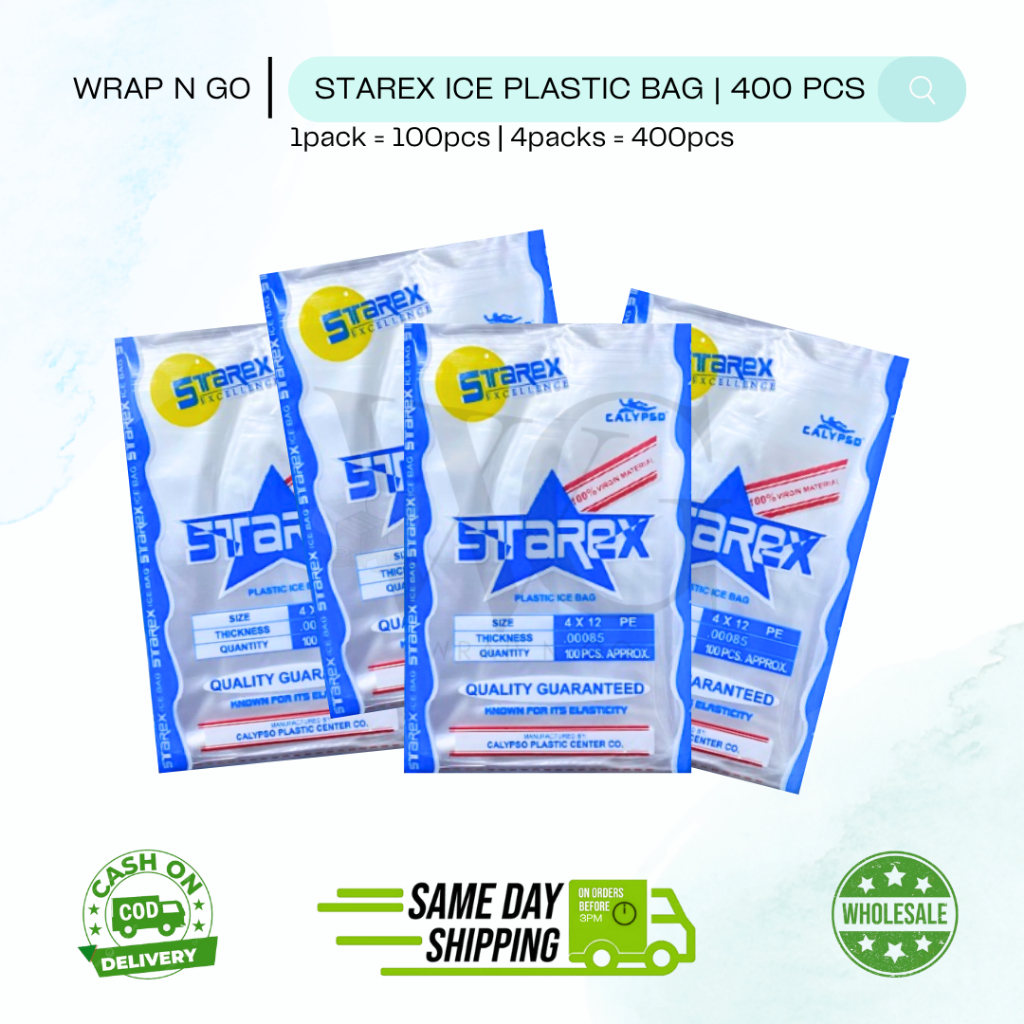 WnG Starex Ice Bag/Plastic ng Yelo | 4x12 Inches Thick & Durable | Wholesale 4packs (~100pcs/pack)