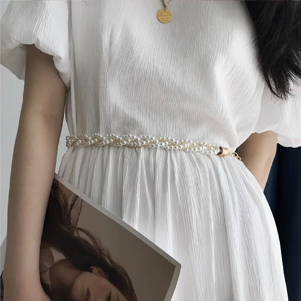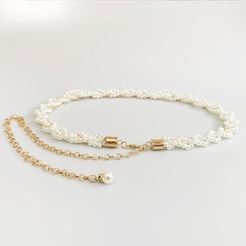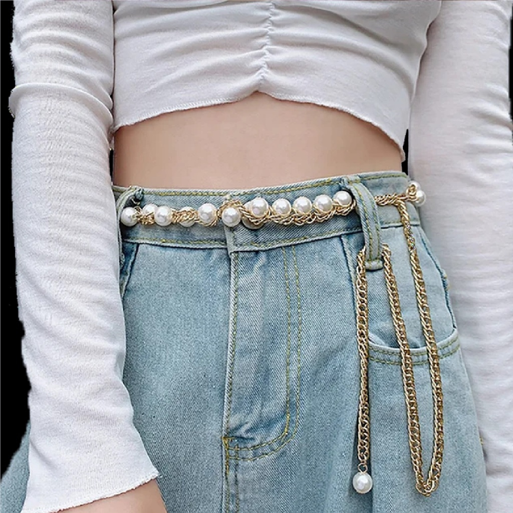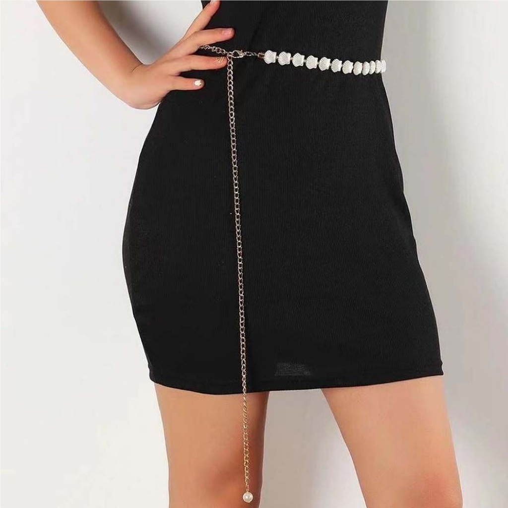 Women's Chain Belt Waist Chain Dress Belts Metal Belt Adjustable shell pearl