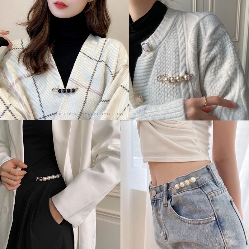 Women's Clothing Brooch Set Pearl Rhinestone Brooches for Women Lapel Pin Tightening Waist Pin Diy Accessories