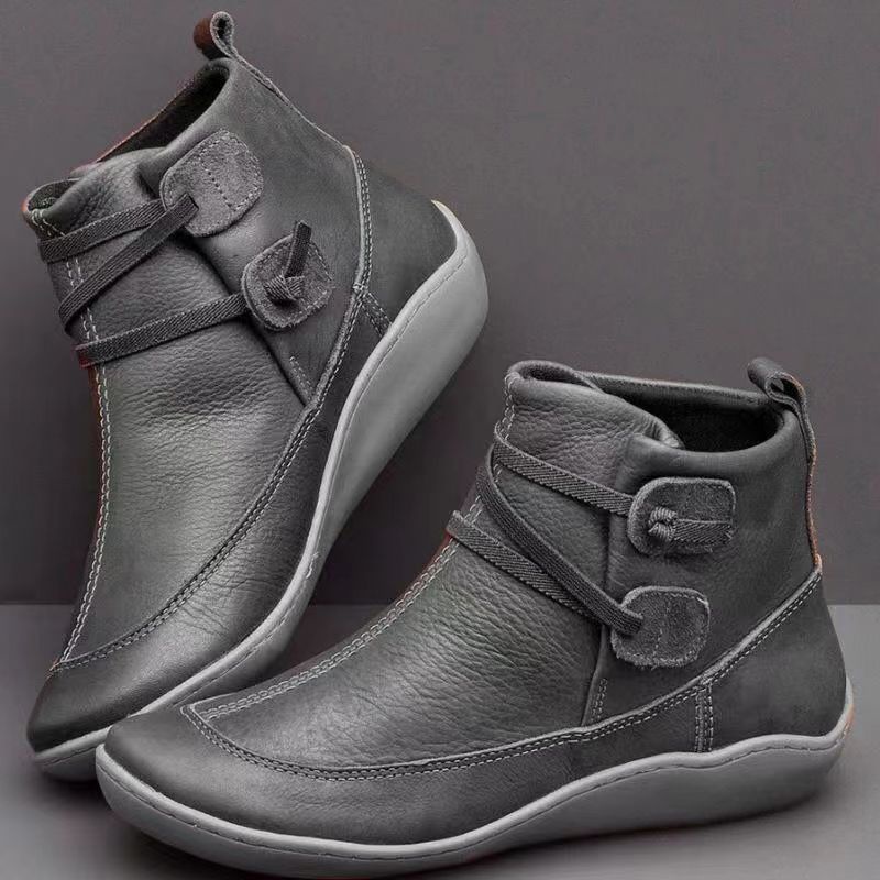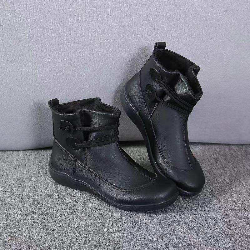 Women's Flat Heel All-Season Waterproof Leather Boots Comfortable Solid Color Flat Heel Boots