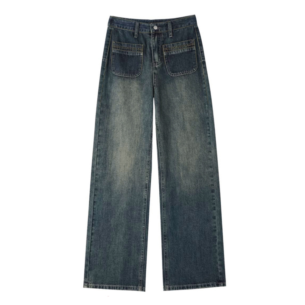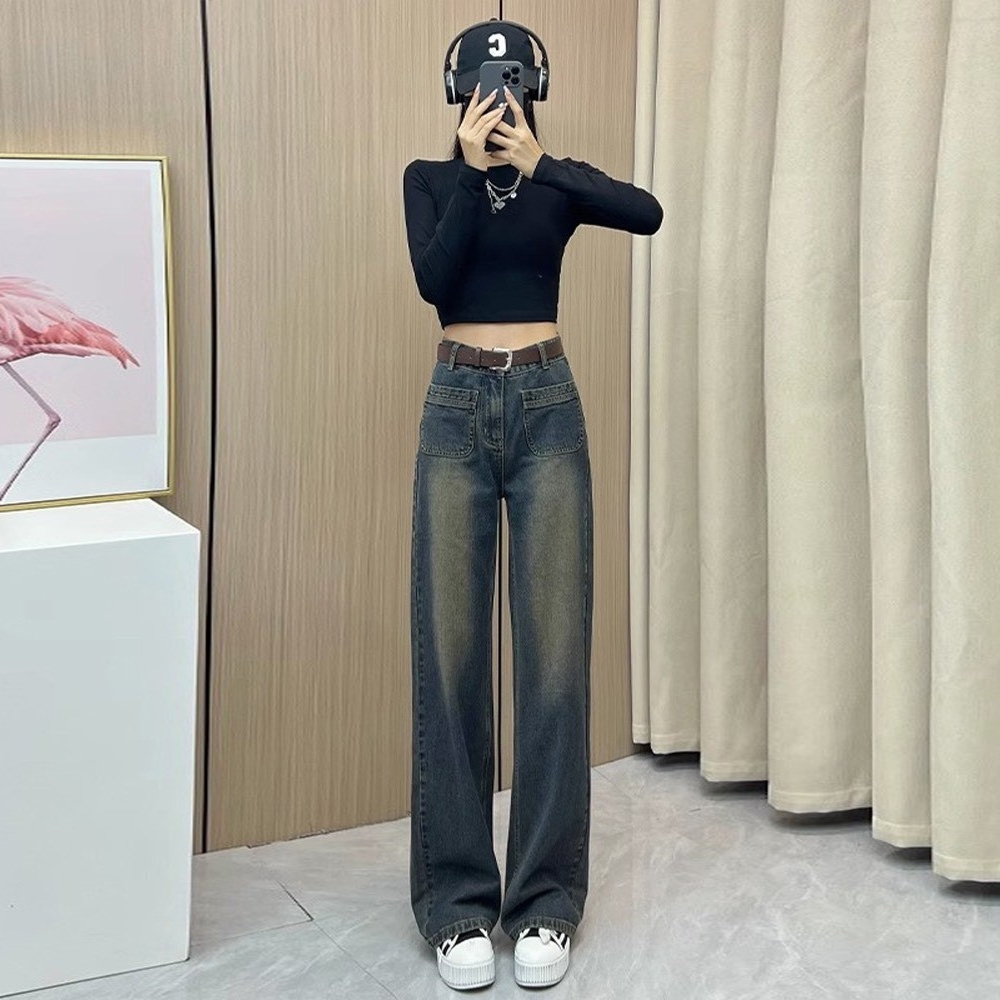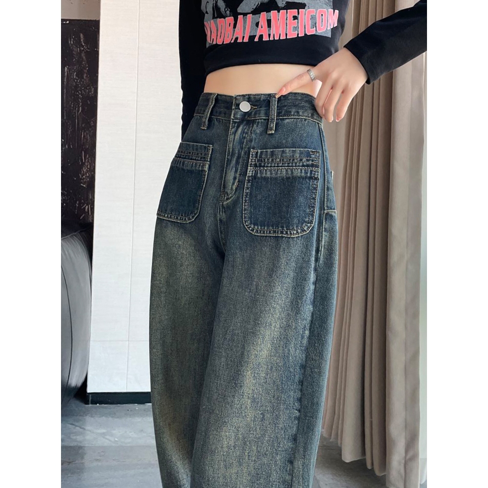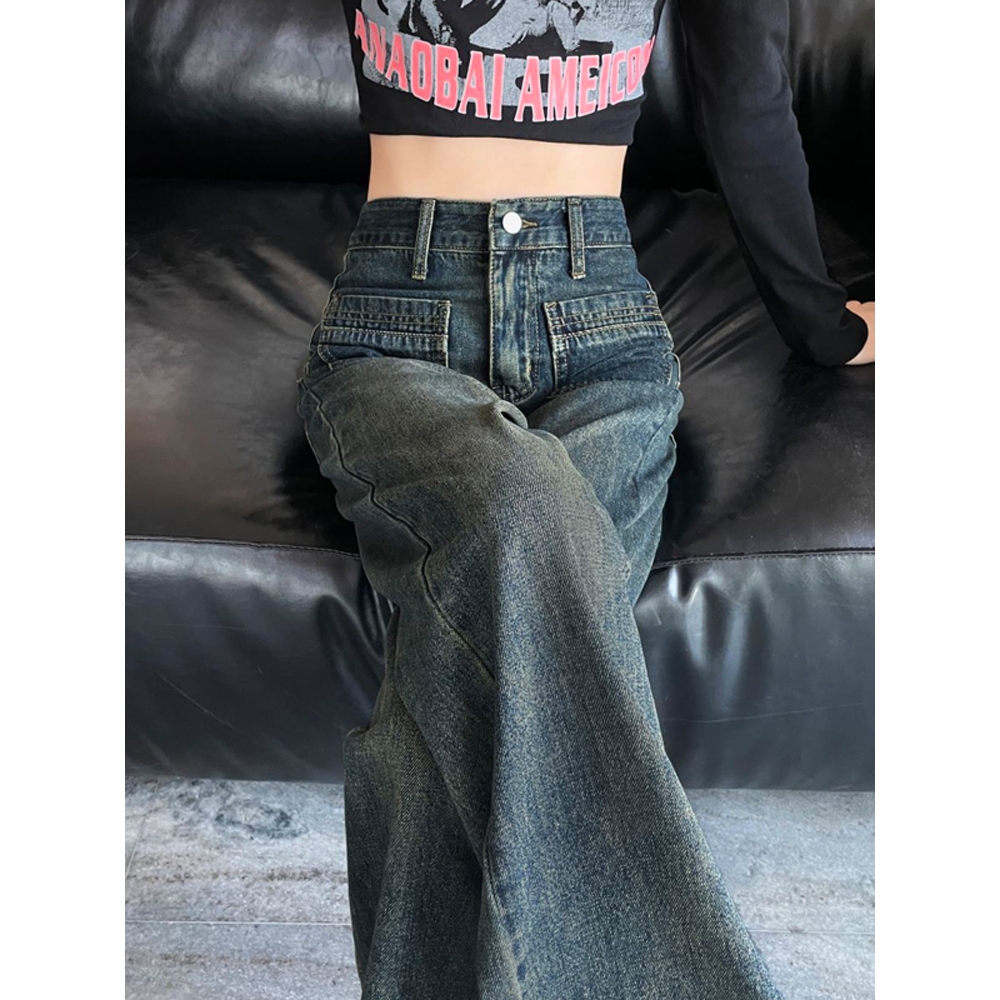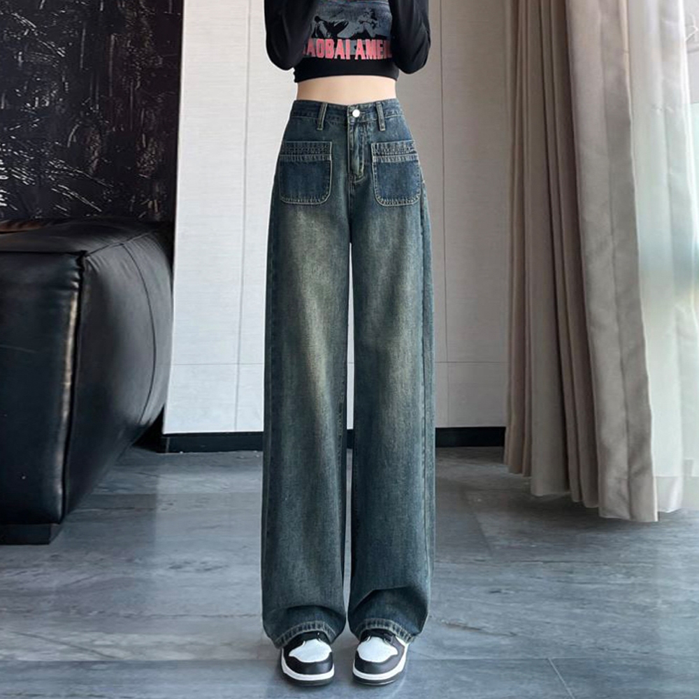 Women's High-Waist Wide-Leg Jeans, Women's Straight-Leg Jeans in Retro Dark Blue Wide-Leg, High-Waist Baggy Style with Straight-Leg Down form