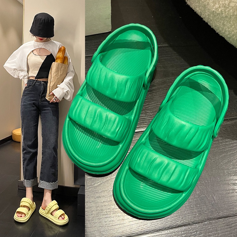 Women's Lightweight Slip On Two Wear Sandals Korean Style Breathable Soft Sole Sandals For Women