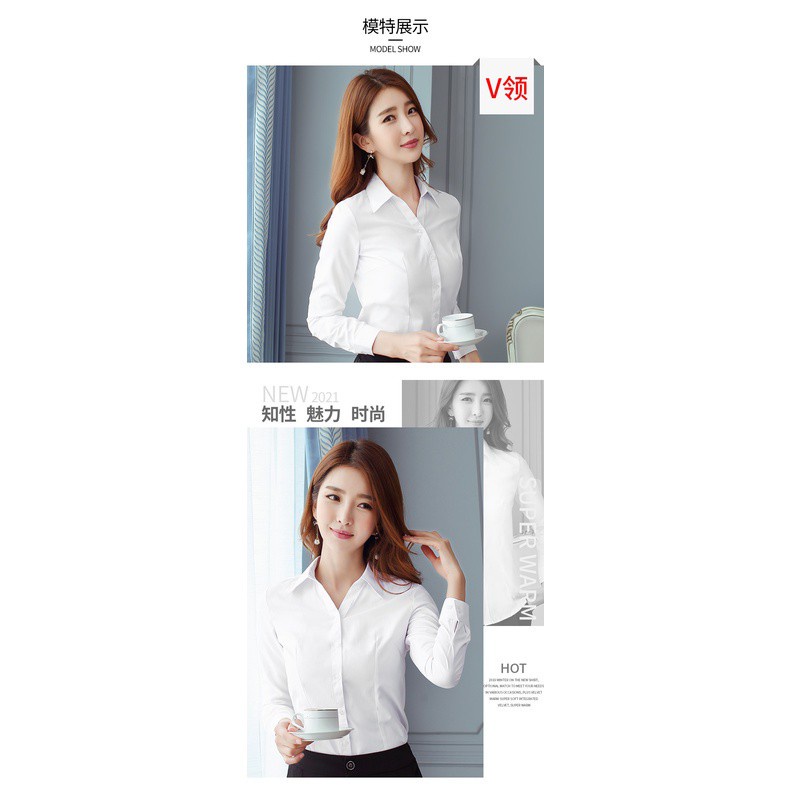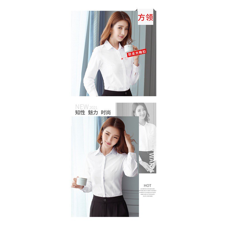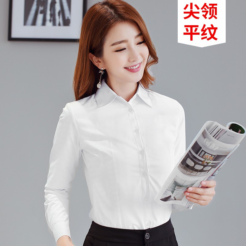 Women's Long Sleeve Solid White Blouse Female Work Top Shirts Officewear Formal Blouses