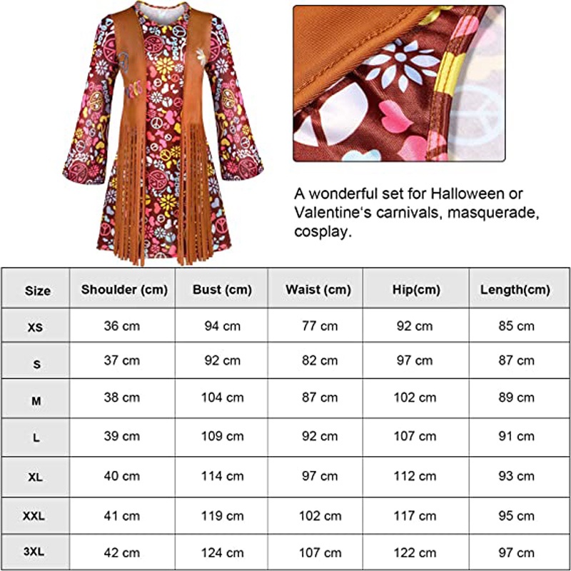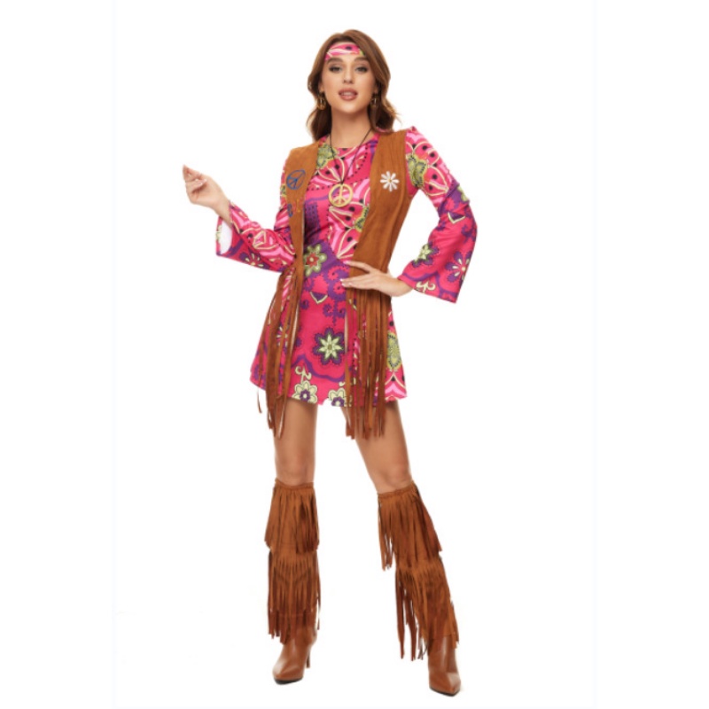 Women's Peace Love Hippie Costume Party 60s 70s Christmas 1960s Stage Performance Halloween Cosplay Indian Tassels Costumes