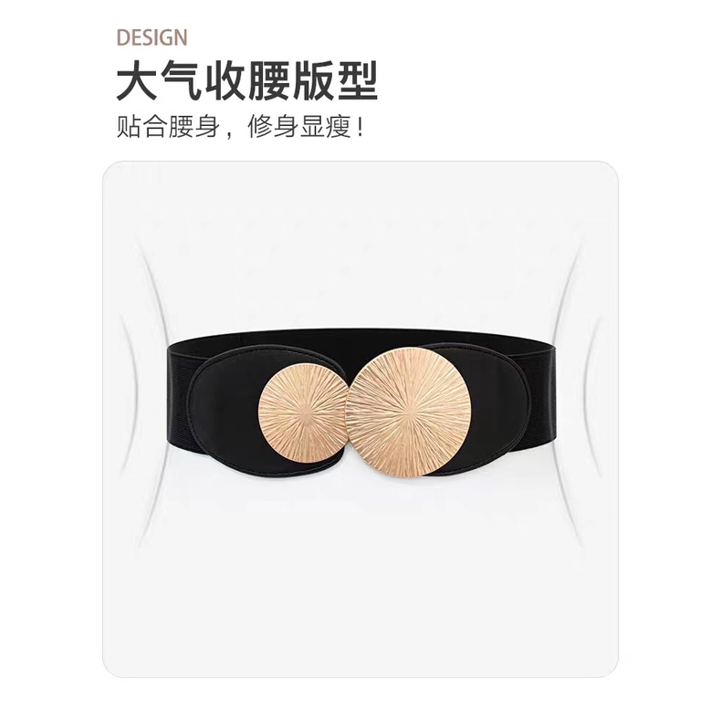 Women's Round Buckle Belt Decorative Dress Waist Closing Coat Elastic Wide Waist Seal