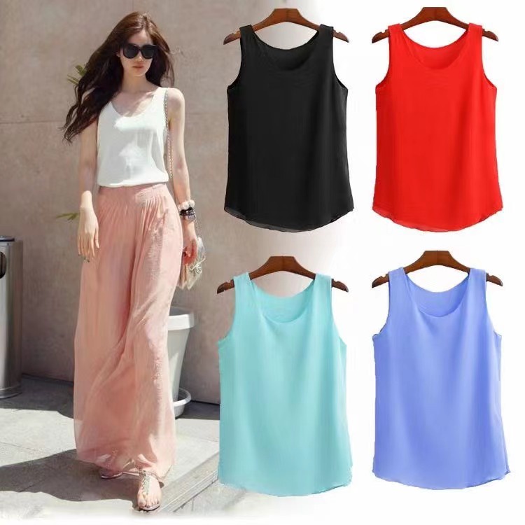 Women's Sexy Sleeveless Chiffon Top Loose Free Size Camisole Chiffon Shirt Sando Vest Top Blouse