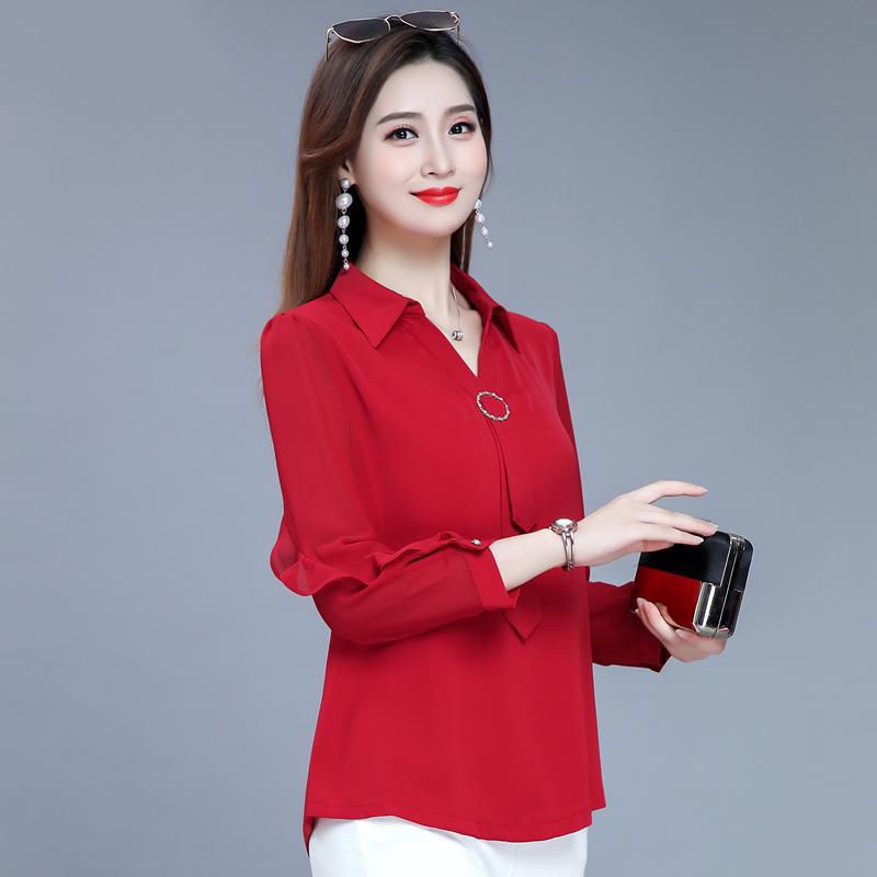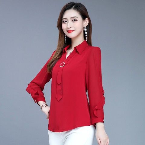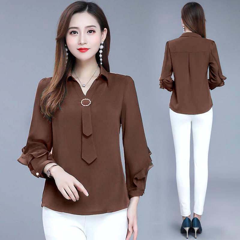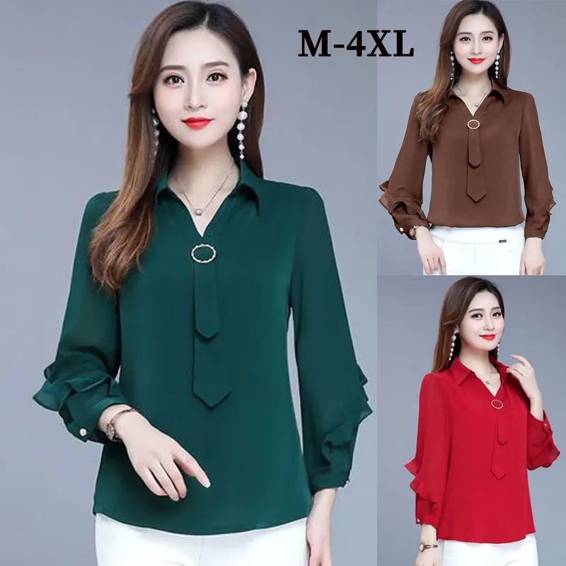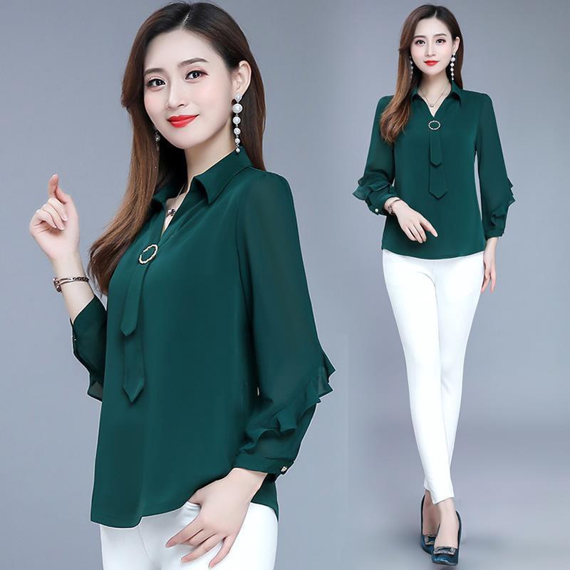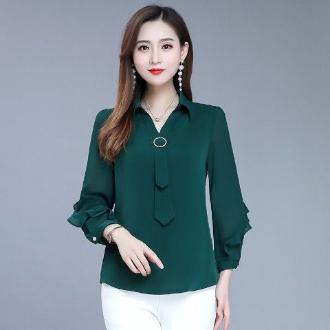 Women Blouses Female Casual Solid Green Long Sleeve Blouse Office Ladies OL Work Tops Uniform