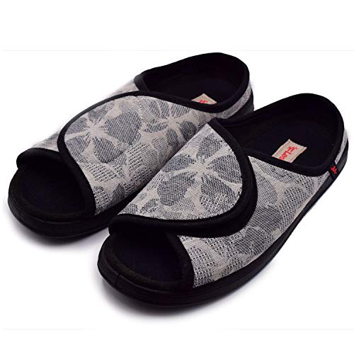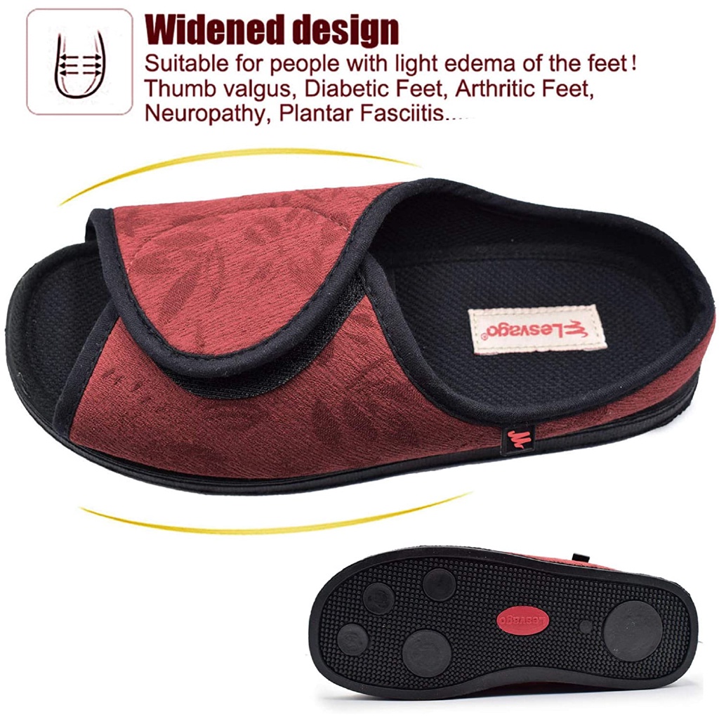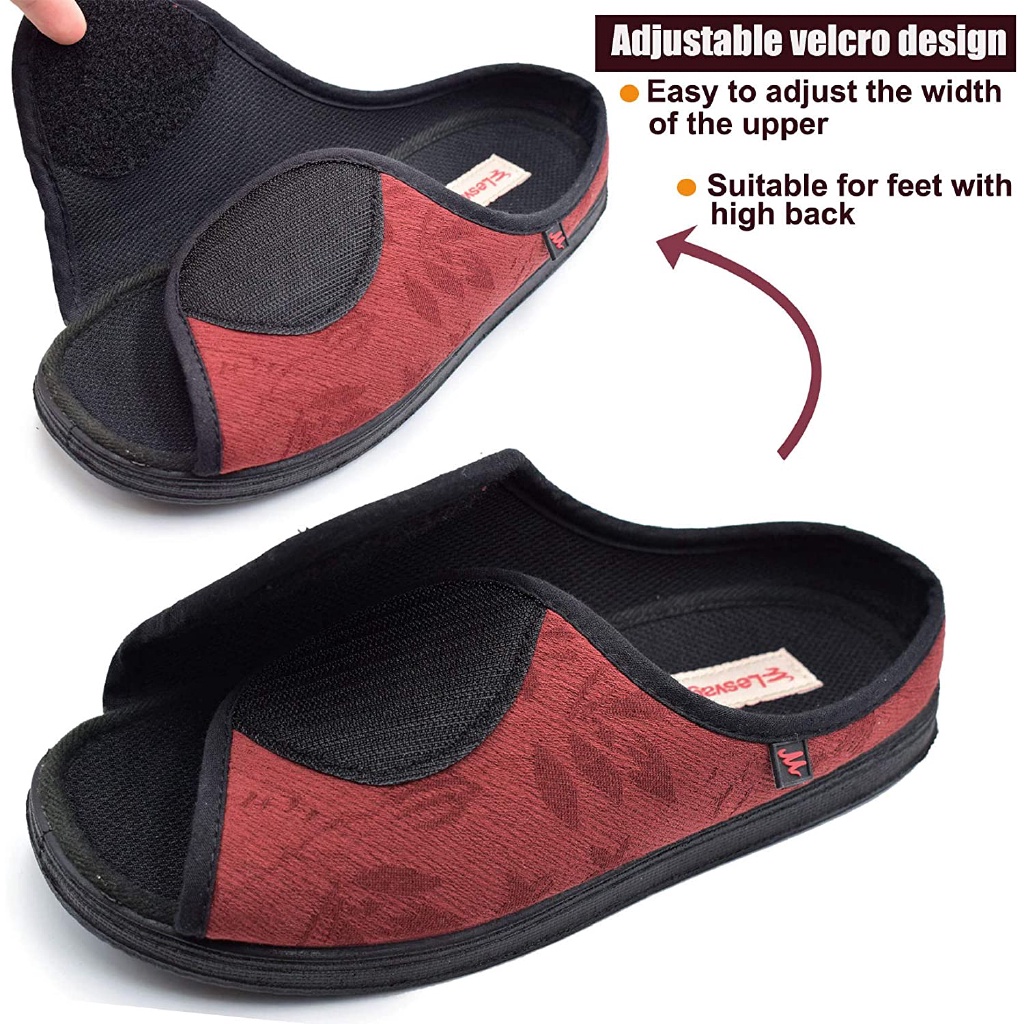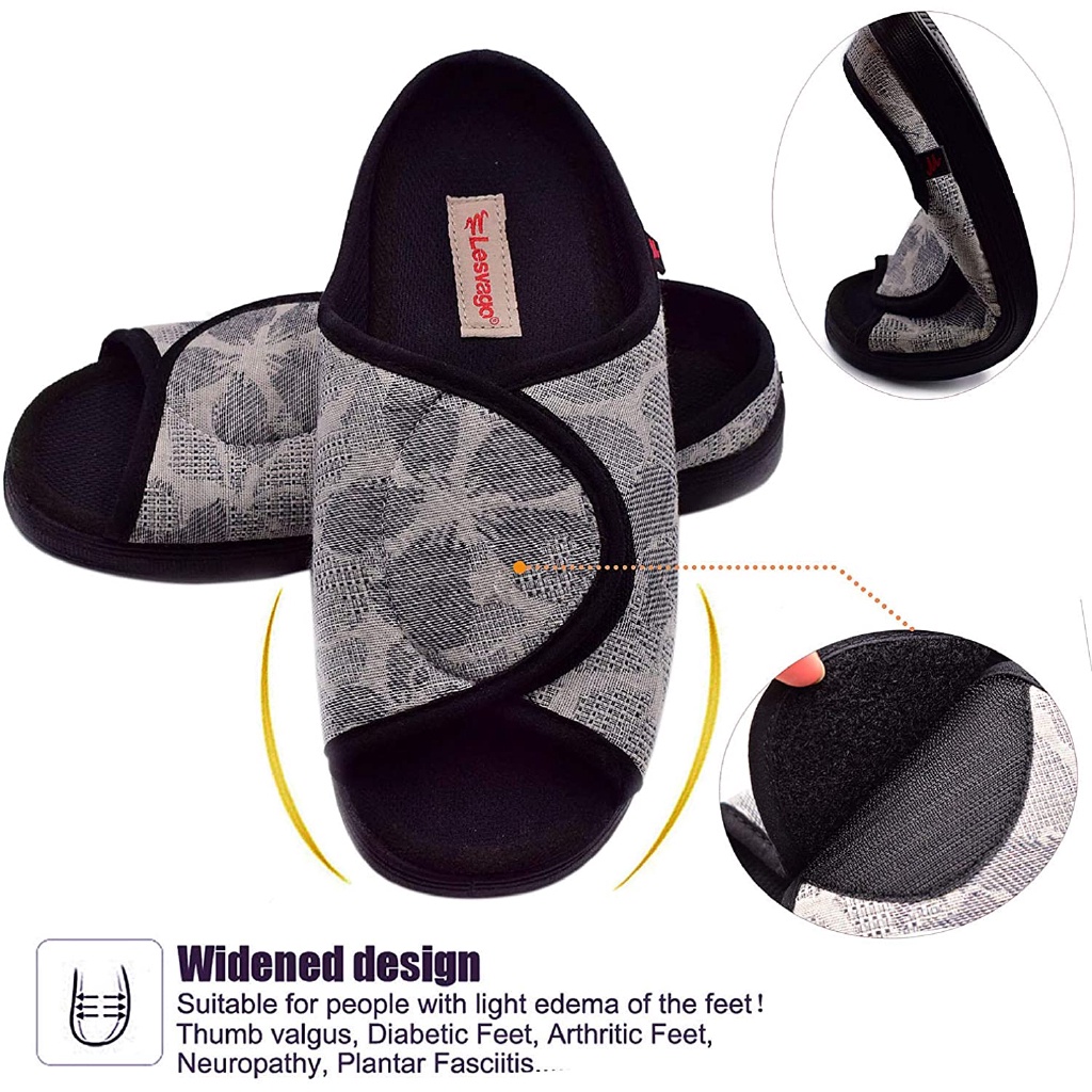 Women Diabetic Slippers Adjustable Closure Memory Foam House Shoes Open Toe Extra Wide Width Adjustable healthcare shoes