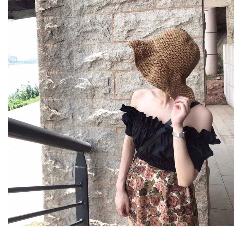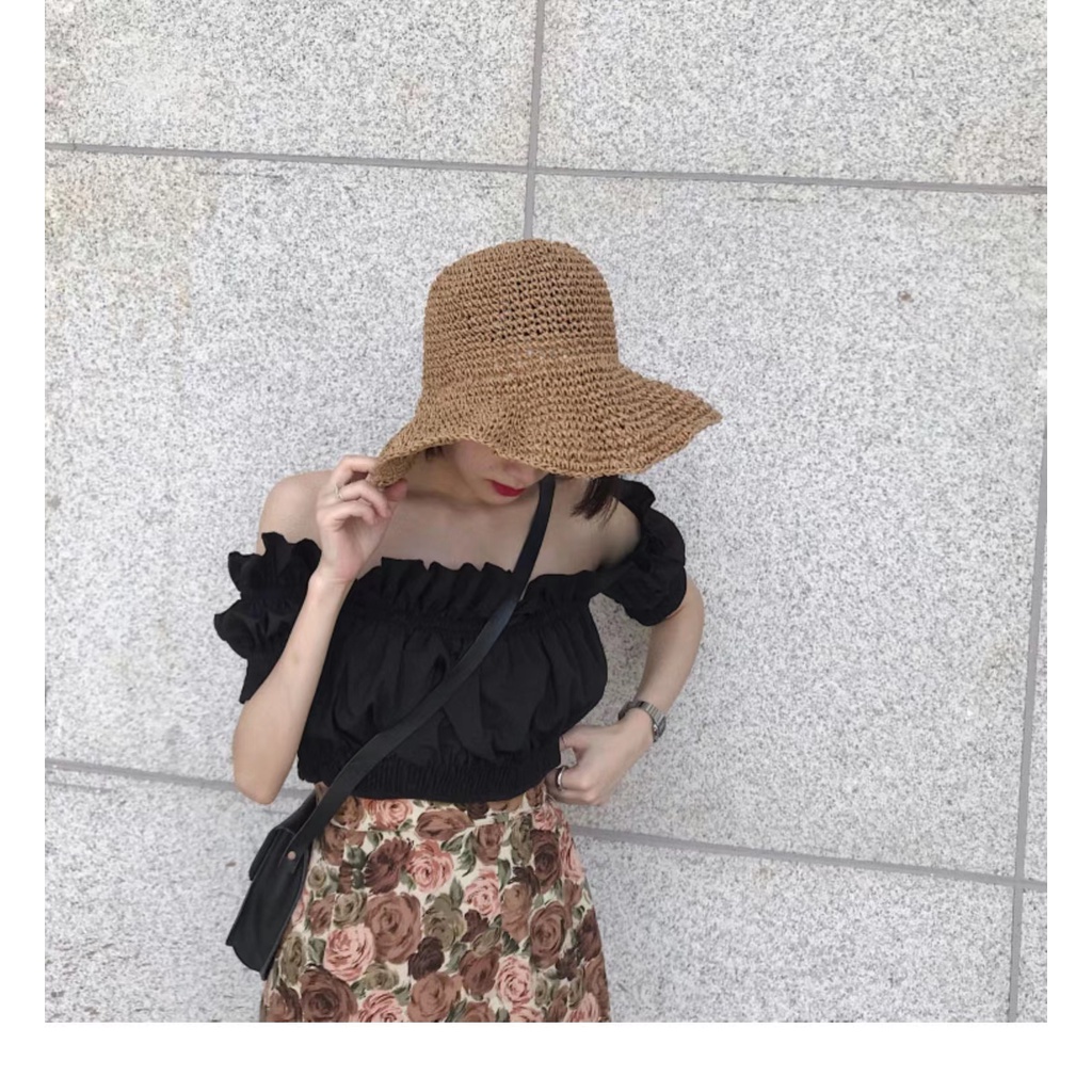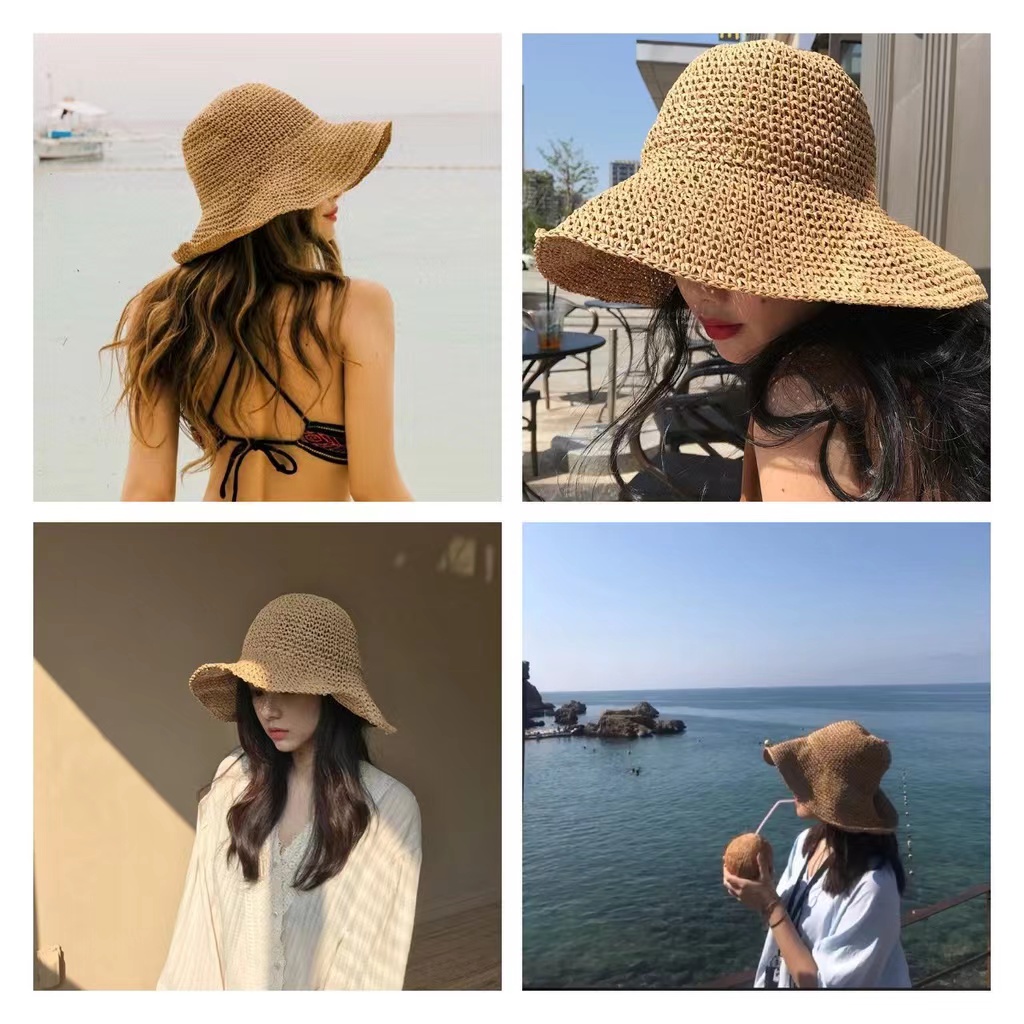 Women Floppy Beach Straw Hat Bucket Hat Pocketable Sun Hats
