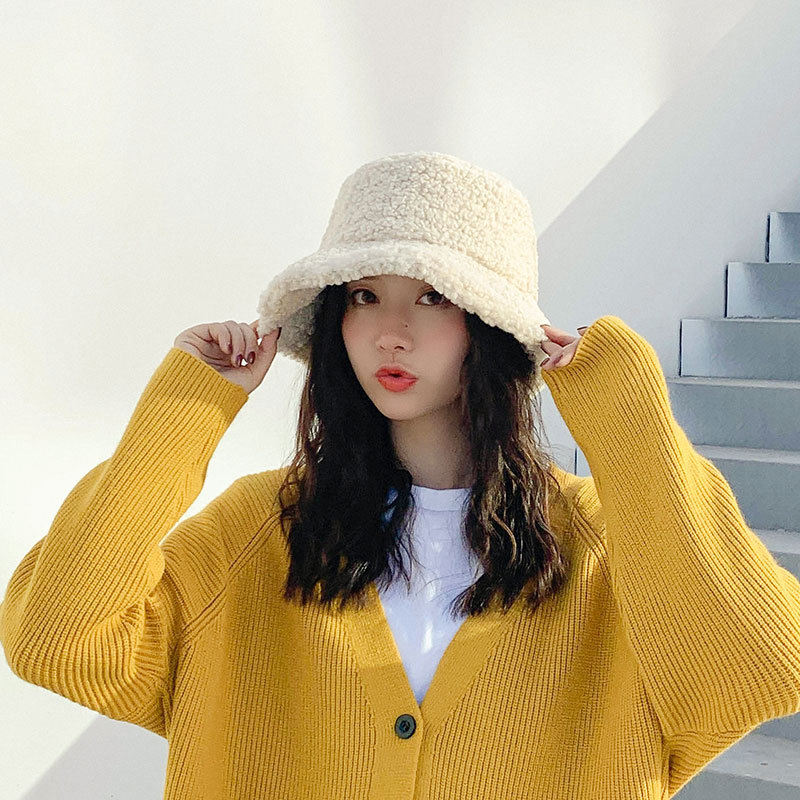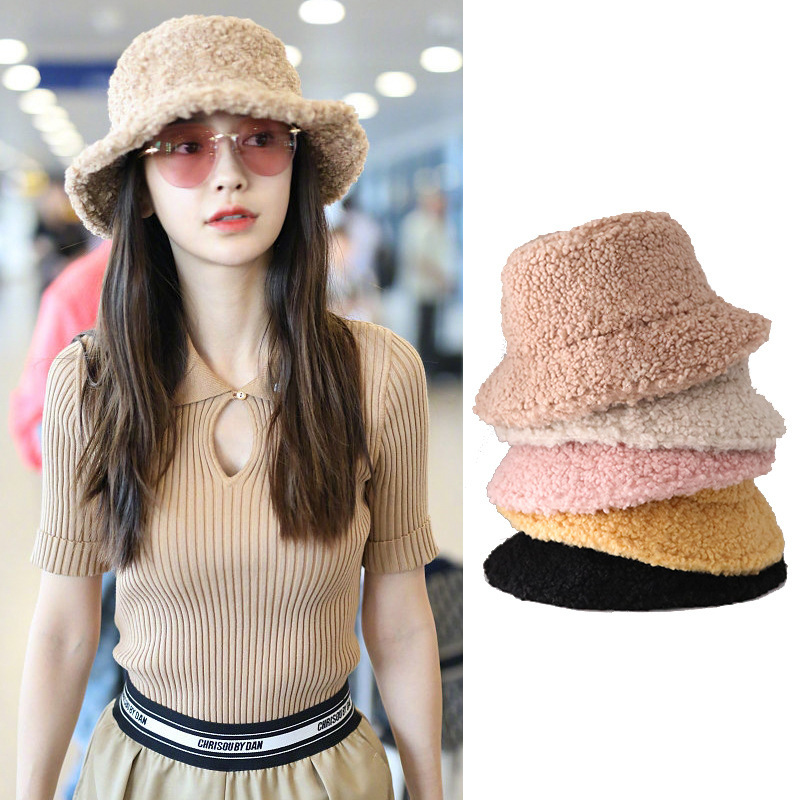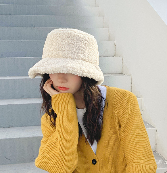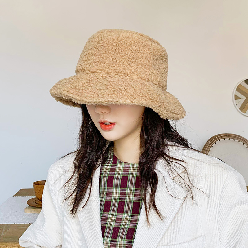 Women Hat Solid Artificial Fur Warm Female Cap Faux Fur Winter Bucket Hat for Women Outdoor Sunscreen Sun Hat Panama Lady Cap