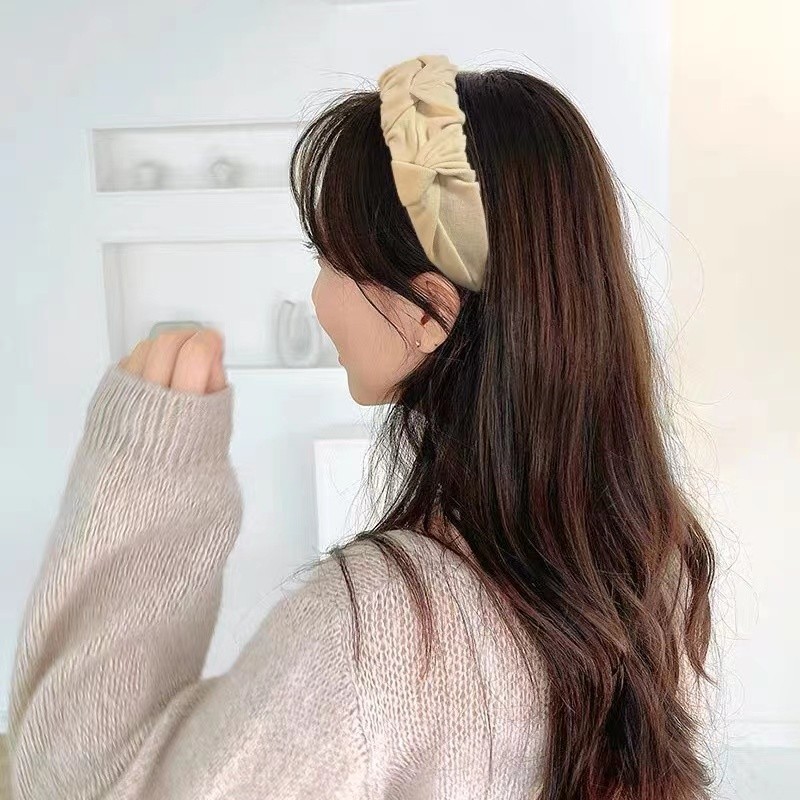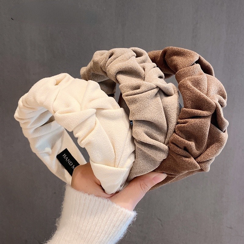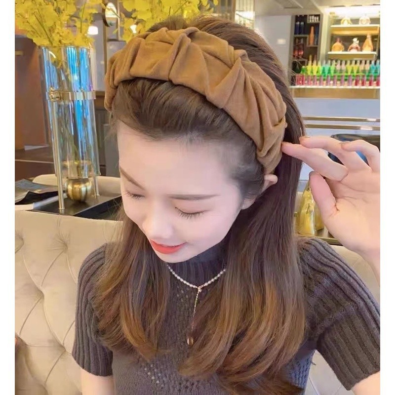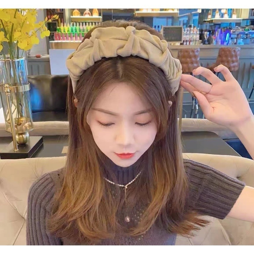Women Korean Khaki Headband Wide-brimmed Sponge Headband Fashion Elegant Hair Band Hoop