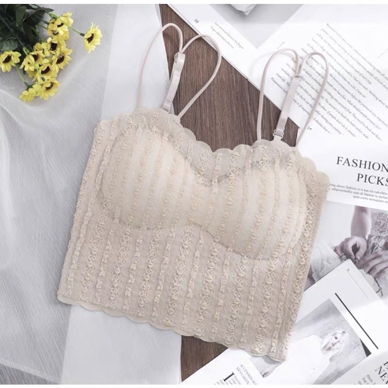 Women Korean Style Seamless Sando With Foam Crop Top Lace Design
