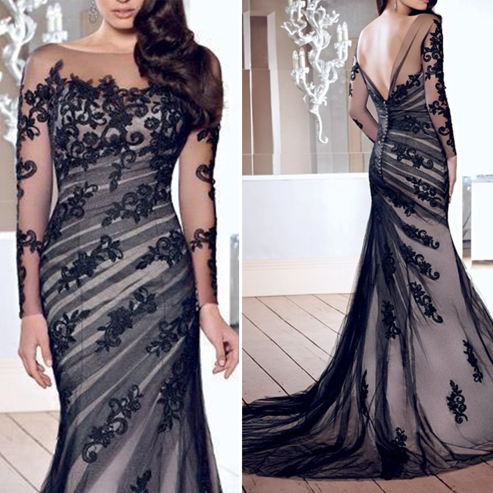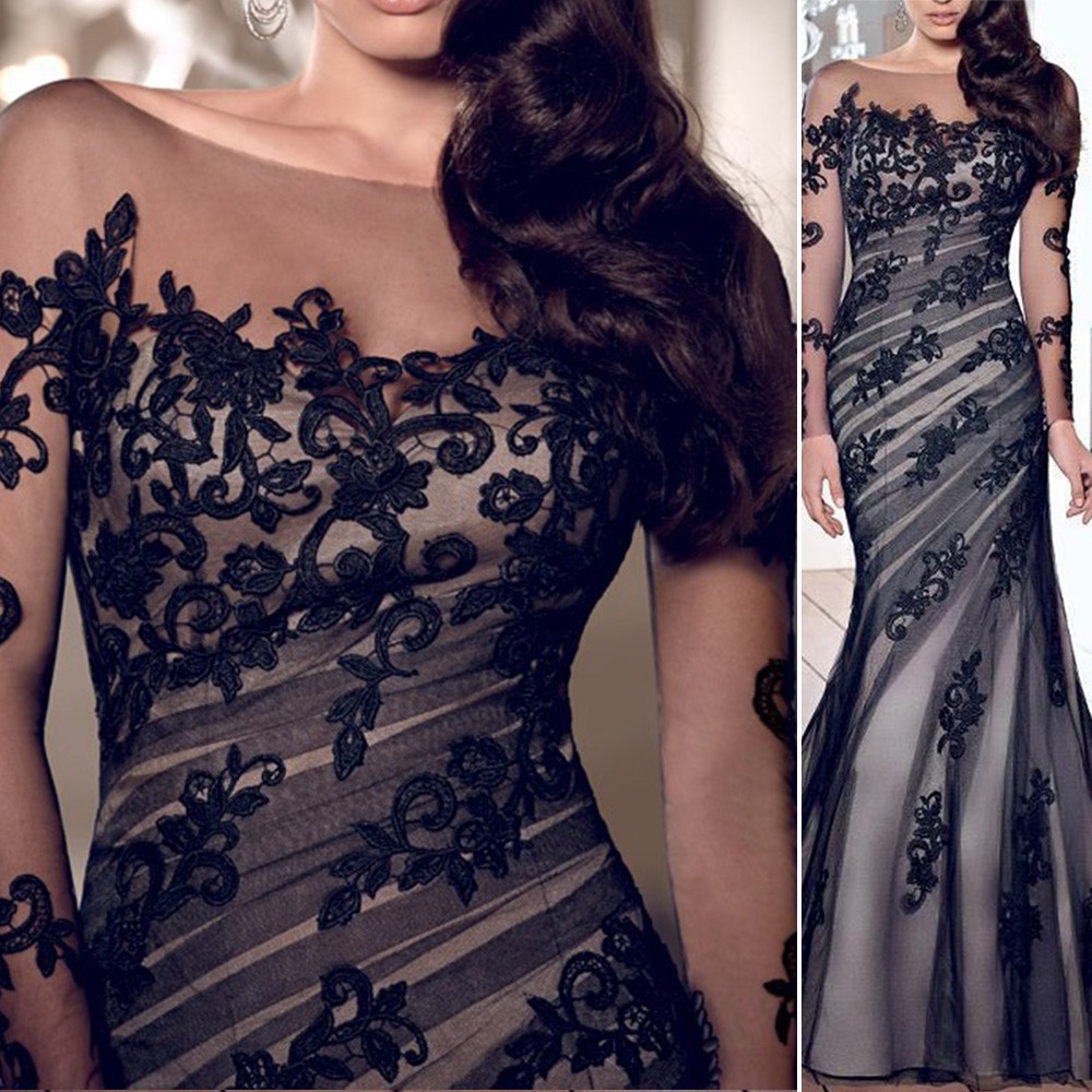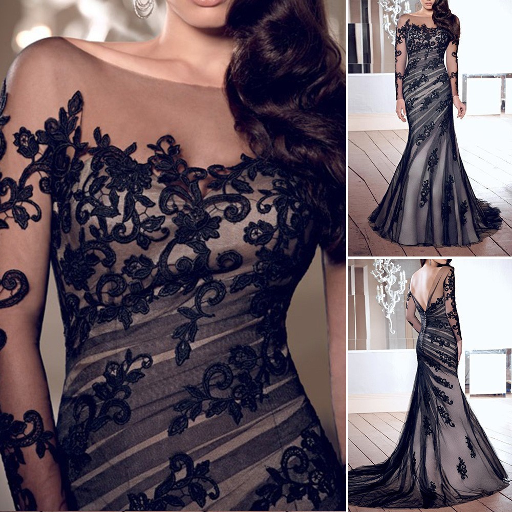 Women Lace Long Sleeve Cocktail Party Prom Ball Gown Dress