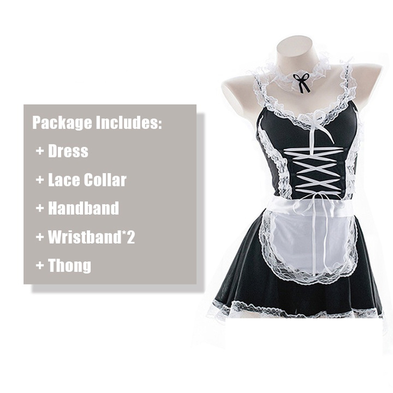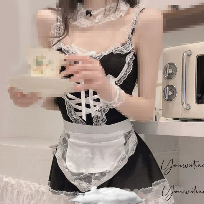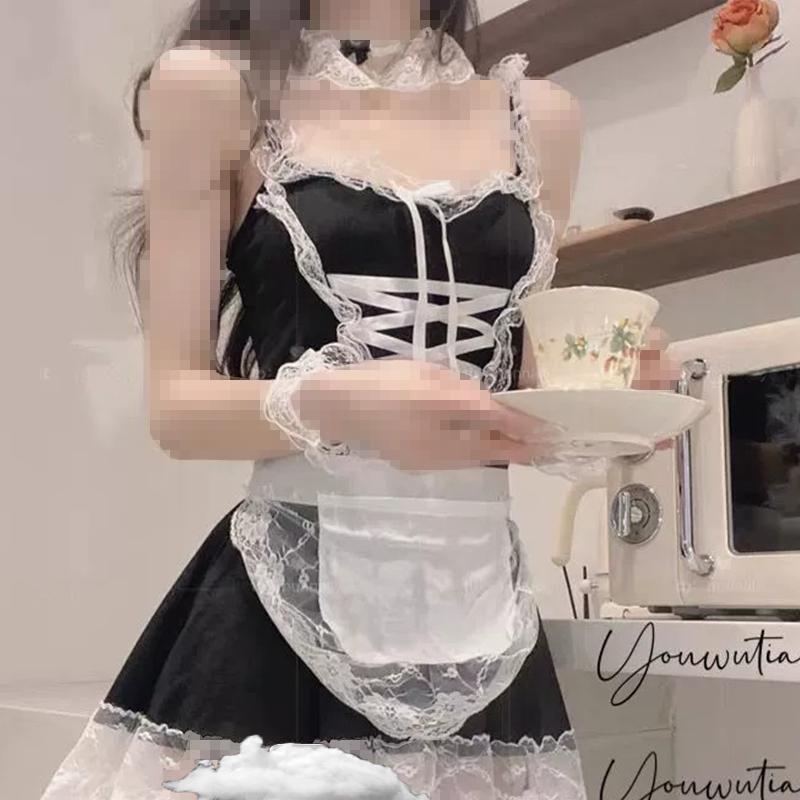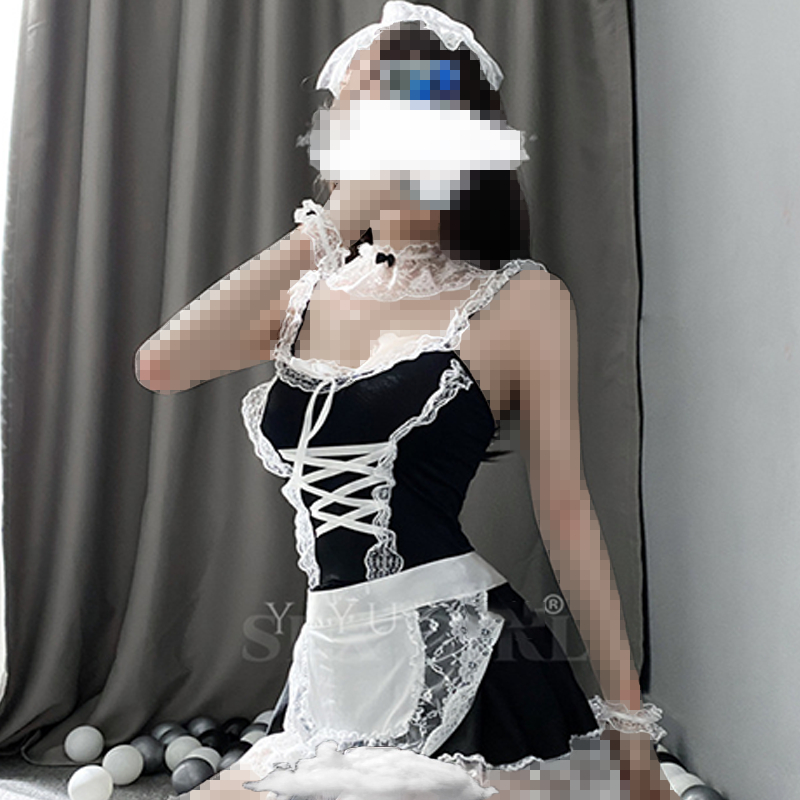 Women Lingerie Lace Maid Cosplay Uniform Skirt Outfit Temptation Dress Pajamas Costume Set