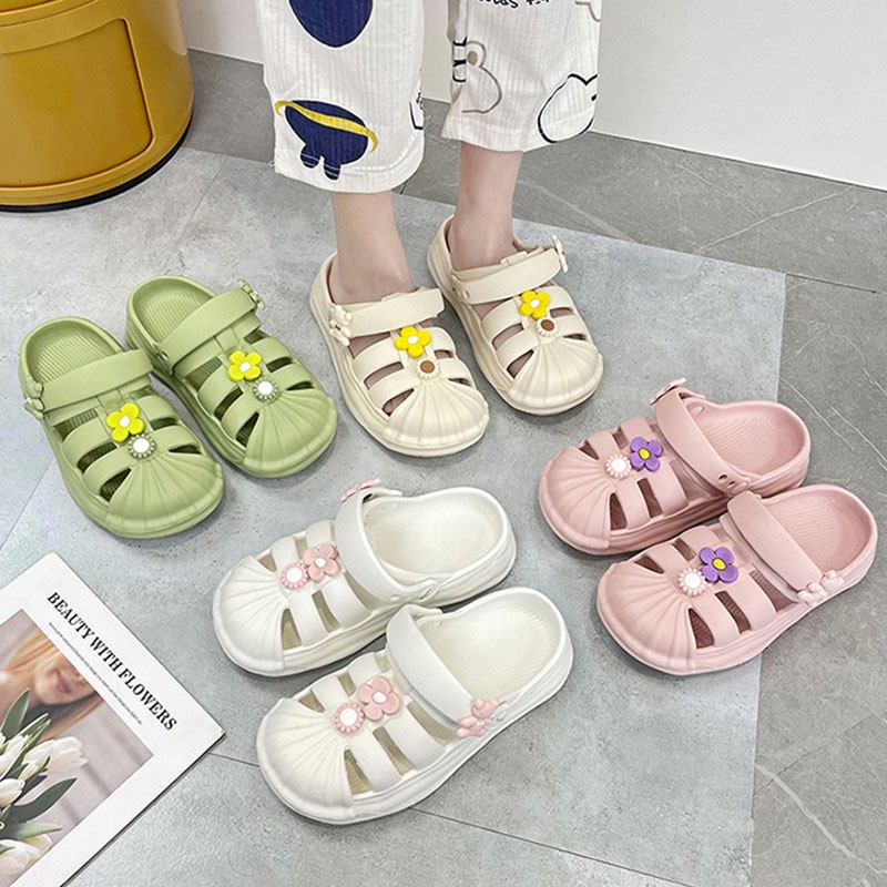 Women New Crocs Clog Sandals for Cute korean style Summer Beach Sandals with Jibbits Flat Sandal