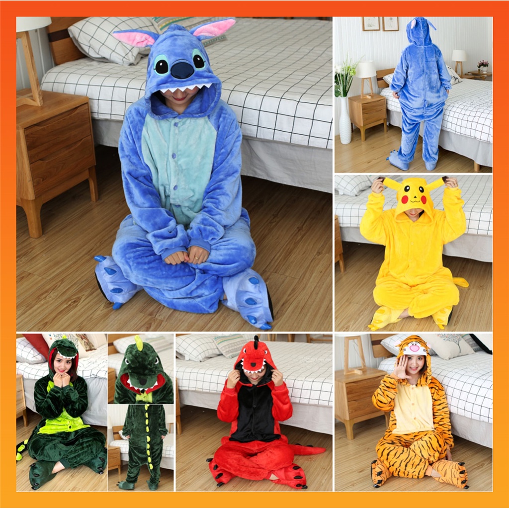 Women Pikachu Stitch Tiger Dinosaur Kigurumi Animal Pajamas Cute Cartoon Anime Cosplay Costume Unisex Onesies Sleepwear