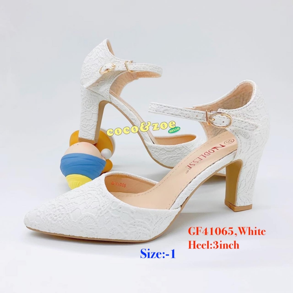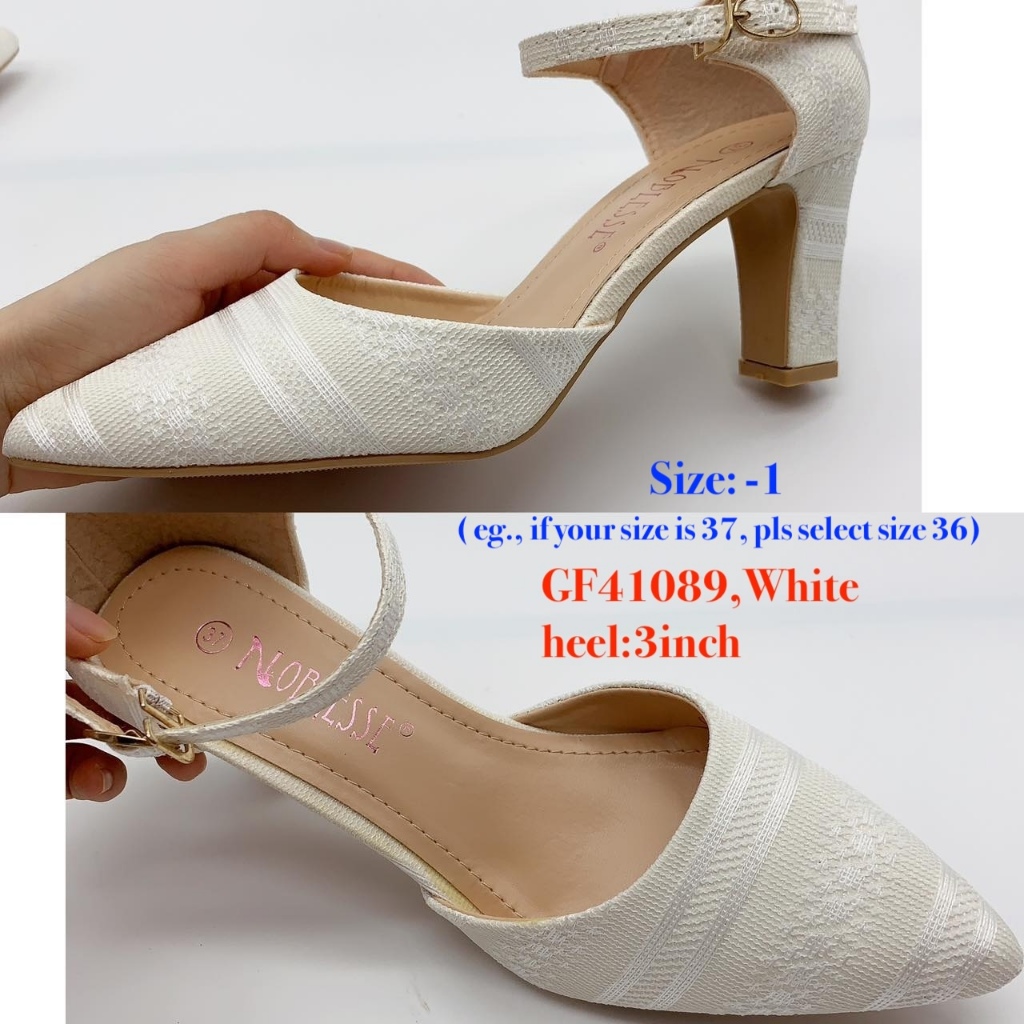 Women Pointed Closed Toe Ankle Strap Block Heel Sandals White Wedding High Heels