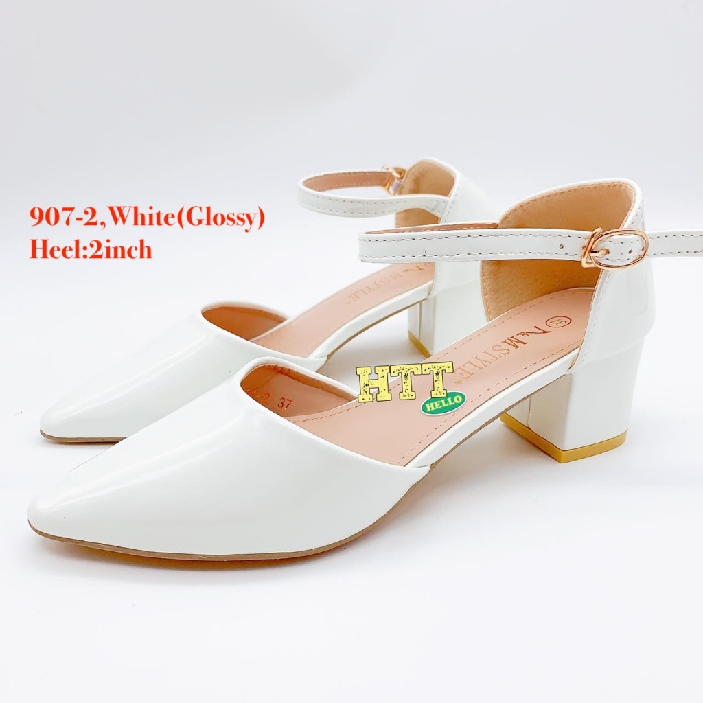 Women Pointed Closed Toe Block Heel Sandals White Wedding Chunky Heels